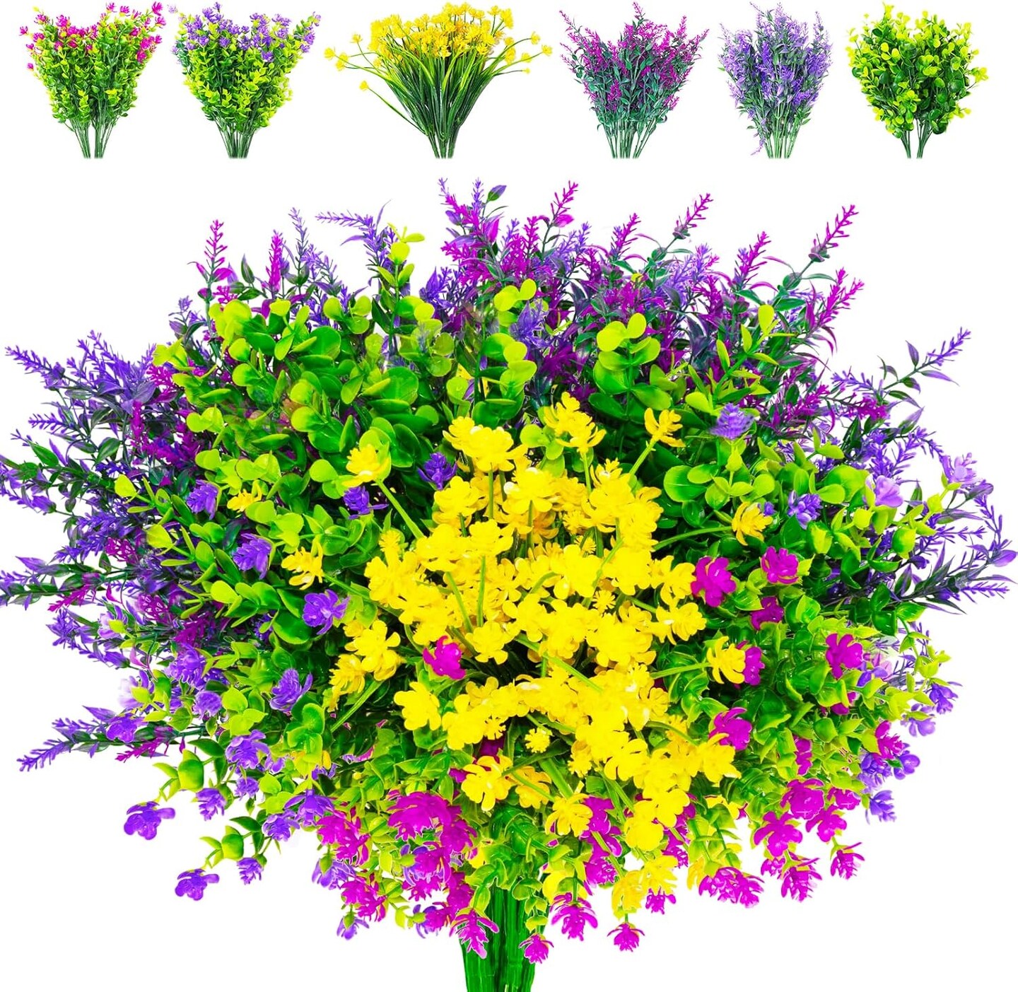 Artificial Outdoor Flowers – 24 Bundles UV-Resistant Faux Boxwood Shrubs, Plastic Fake Plants for Garden, Patio, Porch, Window Boxes & Home Decor