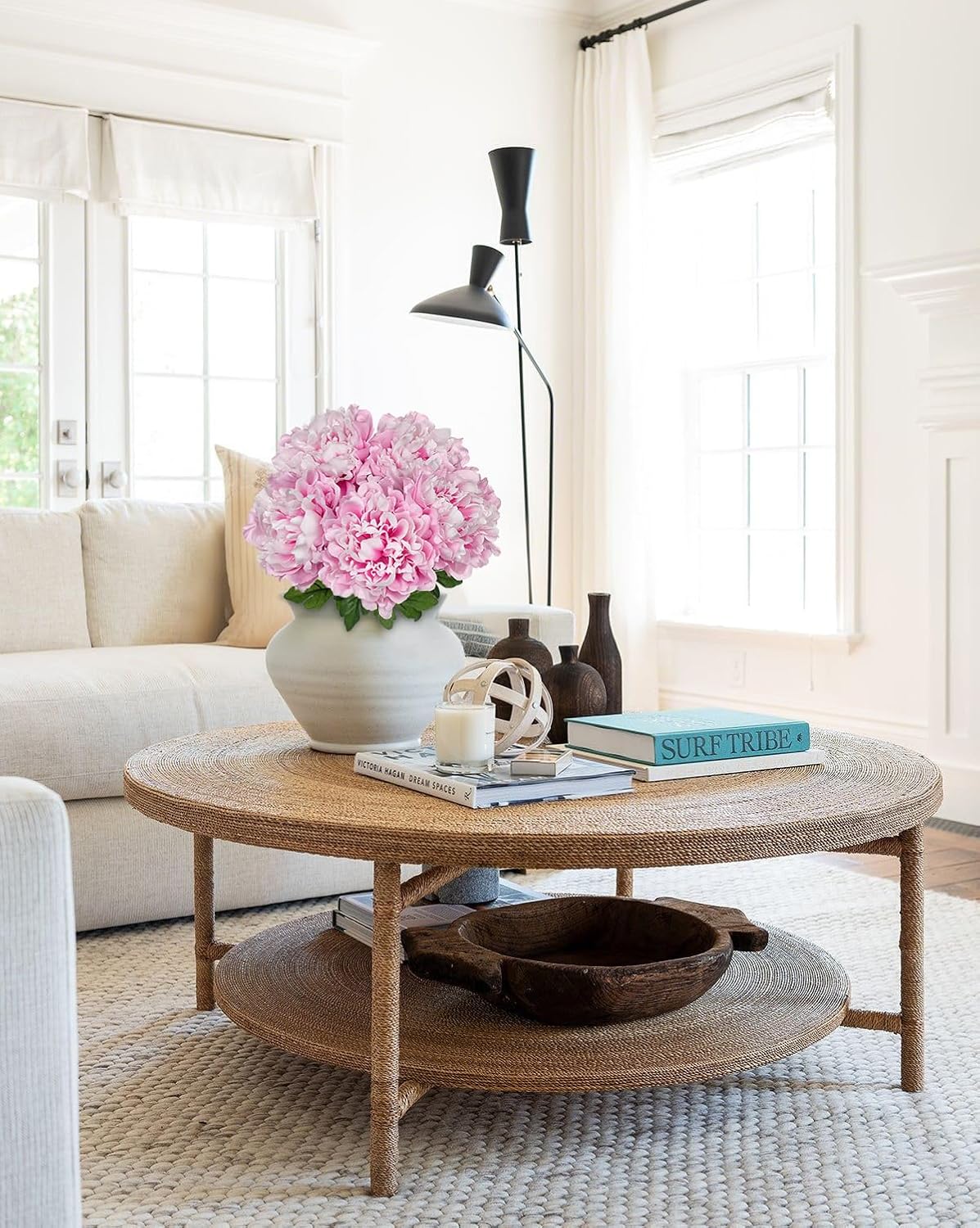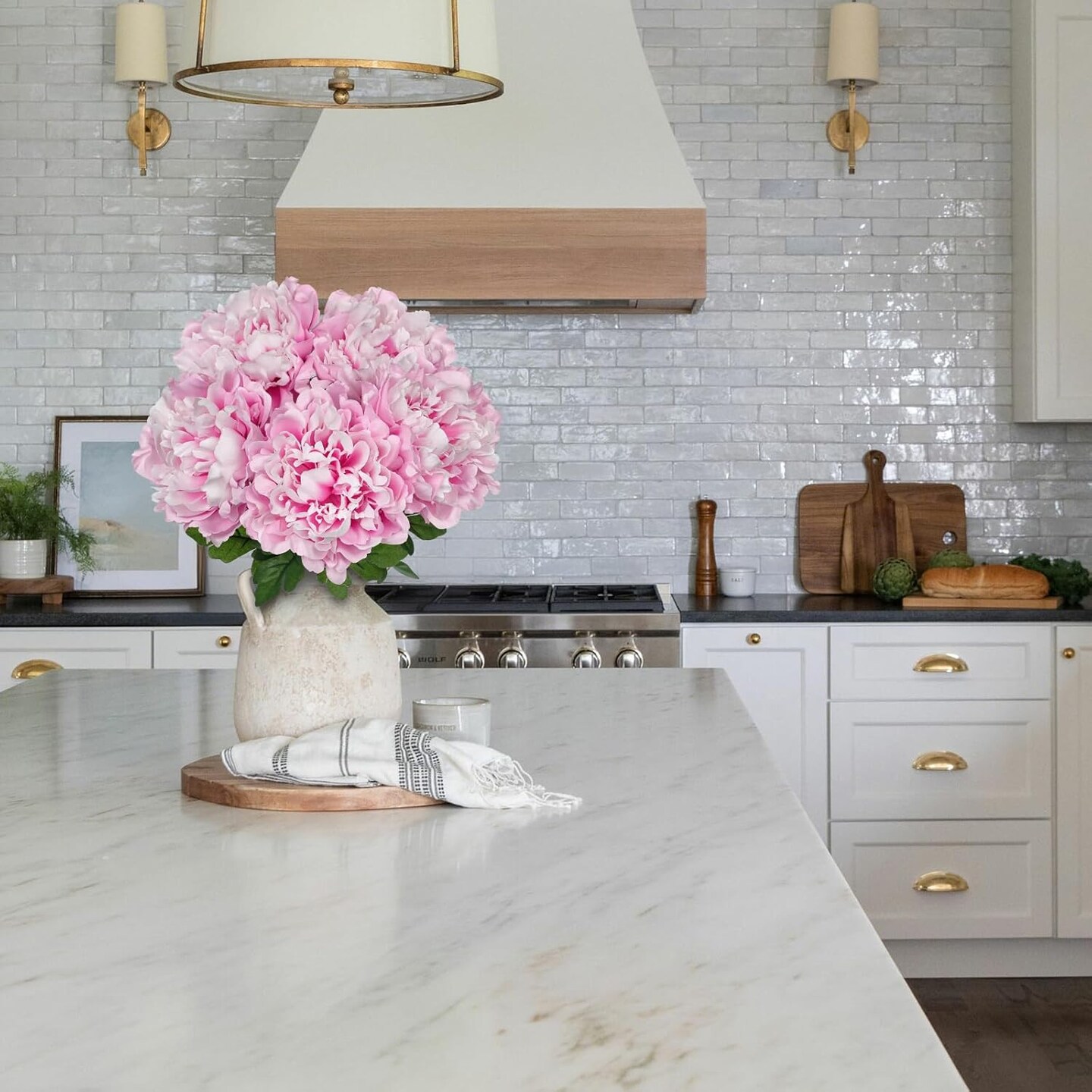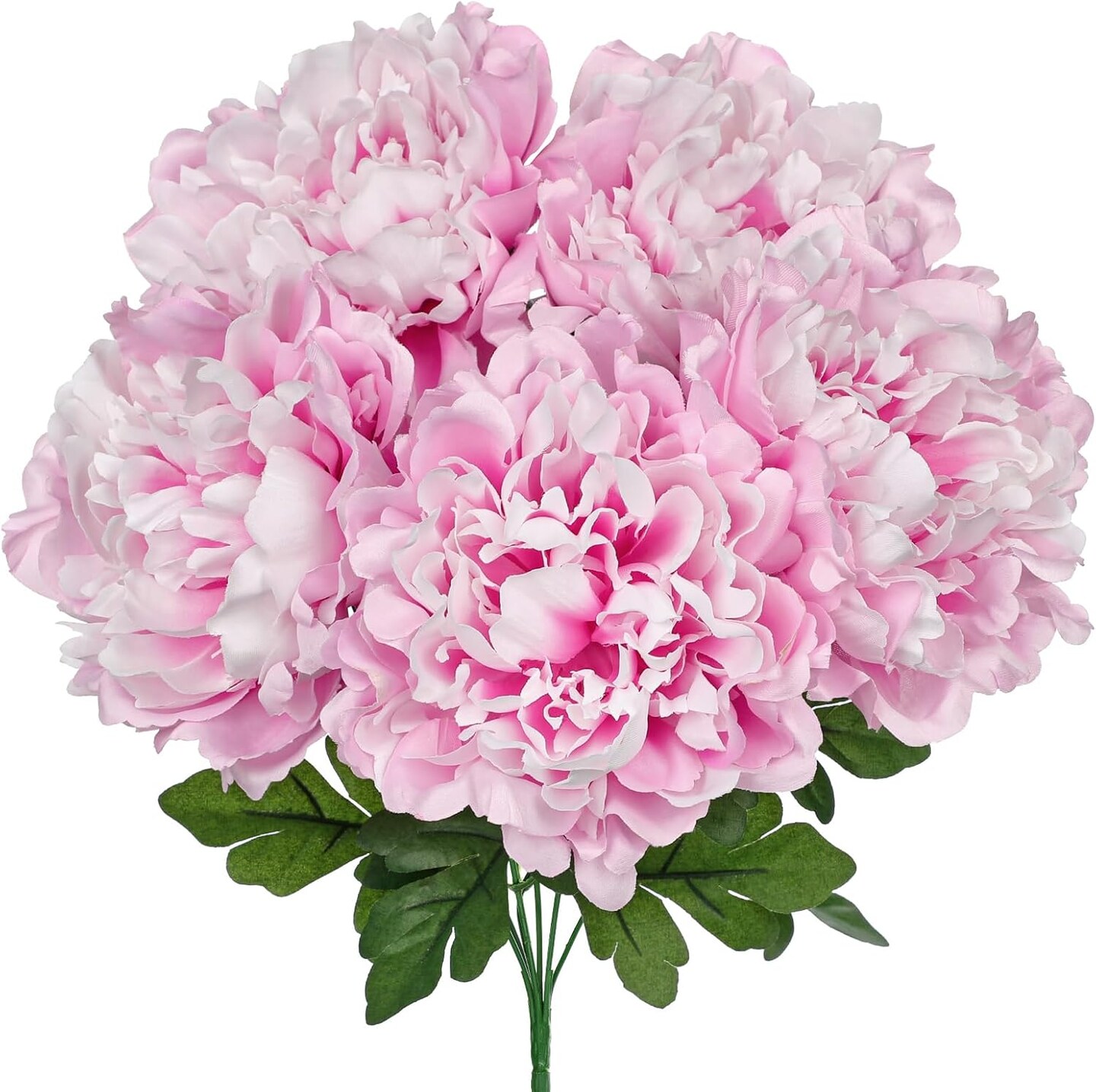 Artificial Peony Flowers Bouquet 15.7" Faux Pink Silk Peonies Floral Arrangement Fake Flowers for Home Office Wedding Party Table Centerpiece Decor