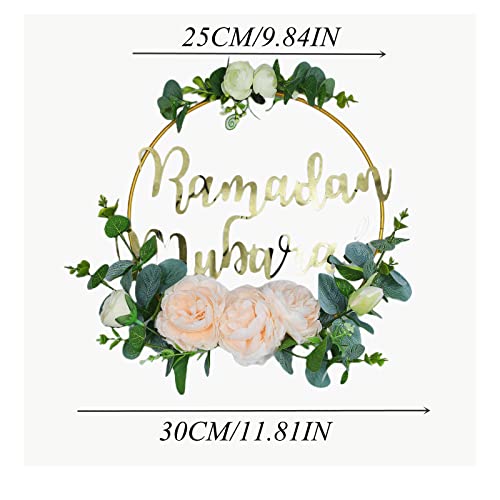 Artificial Pink Camellia Wreath Decorations for Front Door, Round Metal Hoop Floral Hanging Garland, for Wall Window Indoors Outdoor Farmhouse Decor