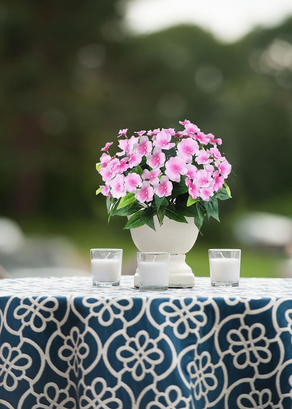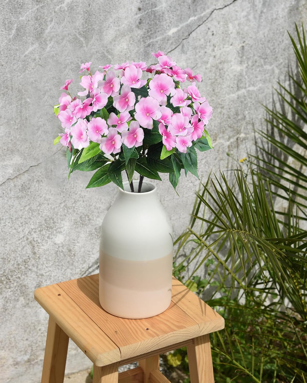 Artificial Pink Impatiens Bouquet – Faux Impatiens Bushes for Patio, Garden, Wedding, Outdoor Photos, Hanging Baskets, Porch & Lawn Decor