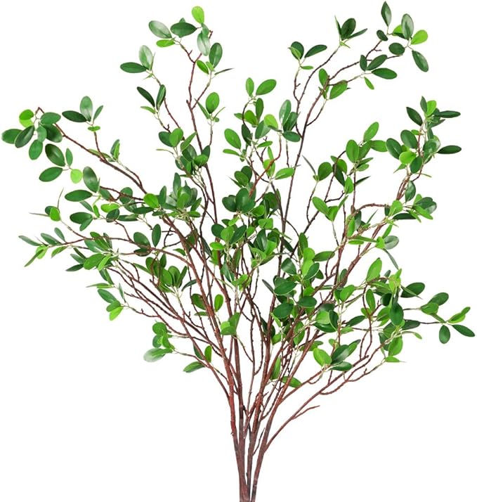 Artificial Plants 3Pcs Faux Greenery Eucalyptus Stems,Faux Branches for Vase Filler,Artificial Ficus Twig Branches Stems for Shop Garden Office Home Décor