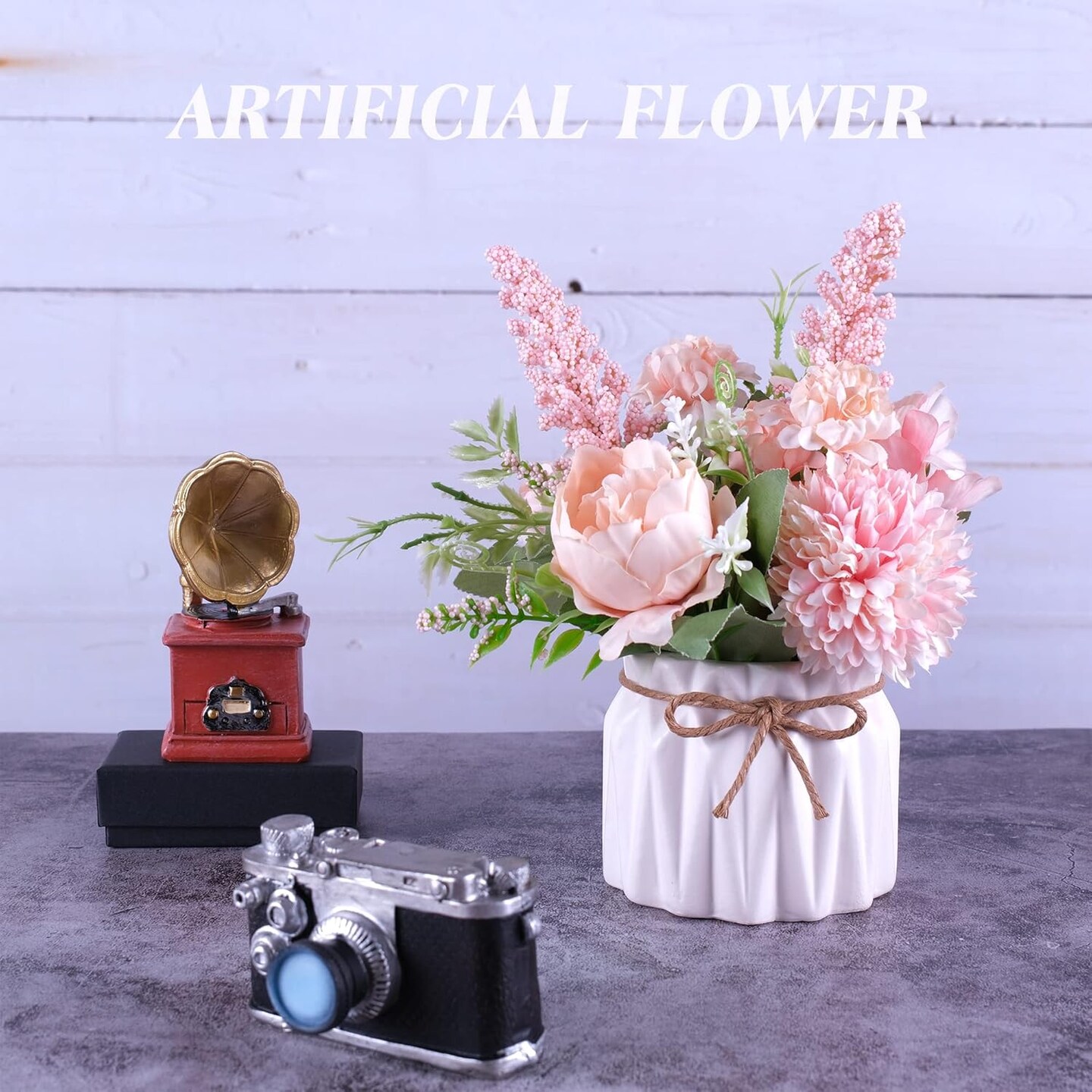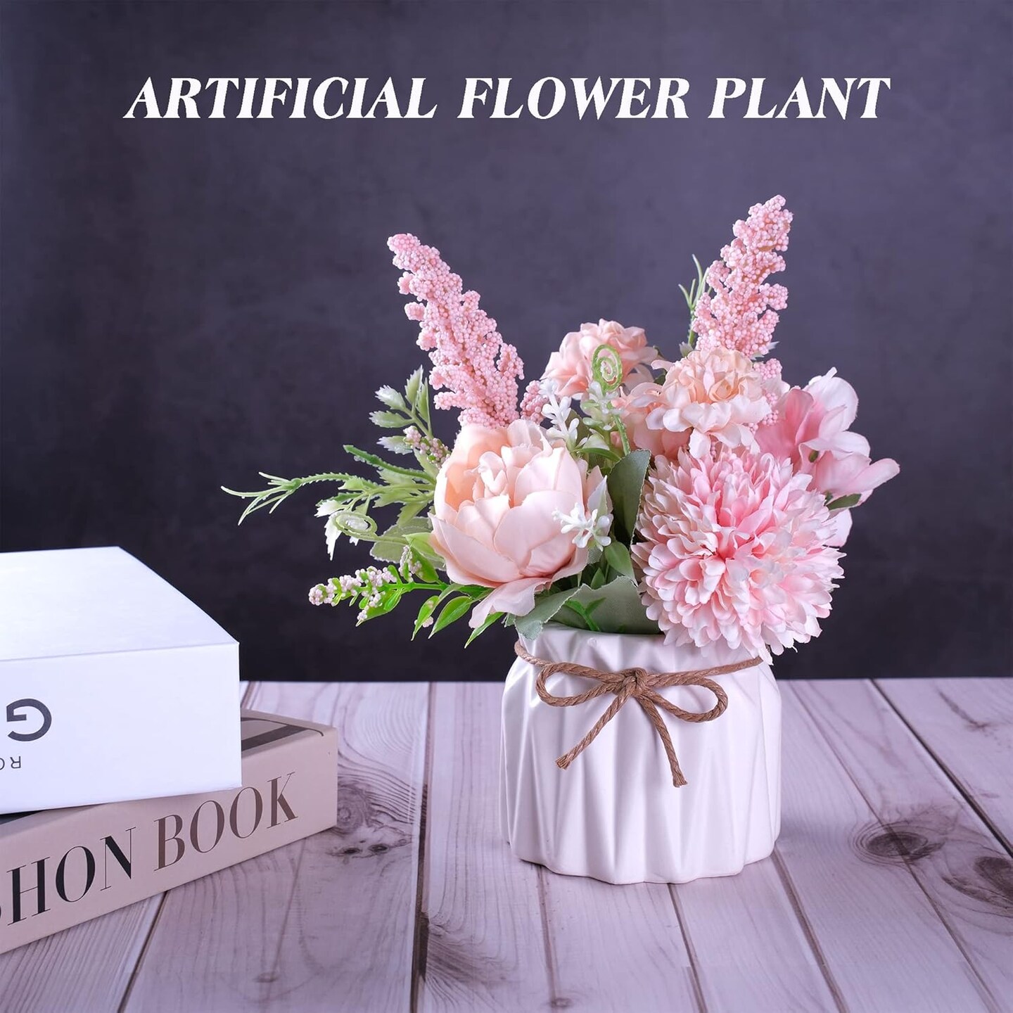 Artificial Potted Flowers Pink, Small Ceramic Vase Fake Flower Plants Desktop Decoration Indoor for Home and Office, Faux Flowers Hydrangea Decor (Pink)