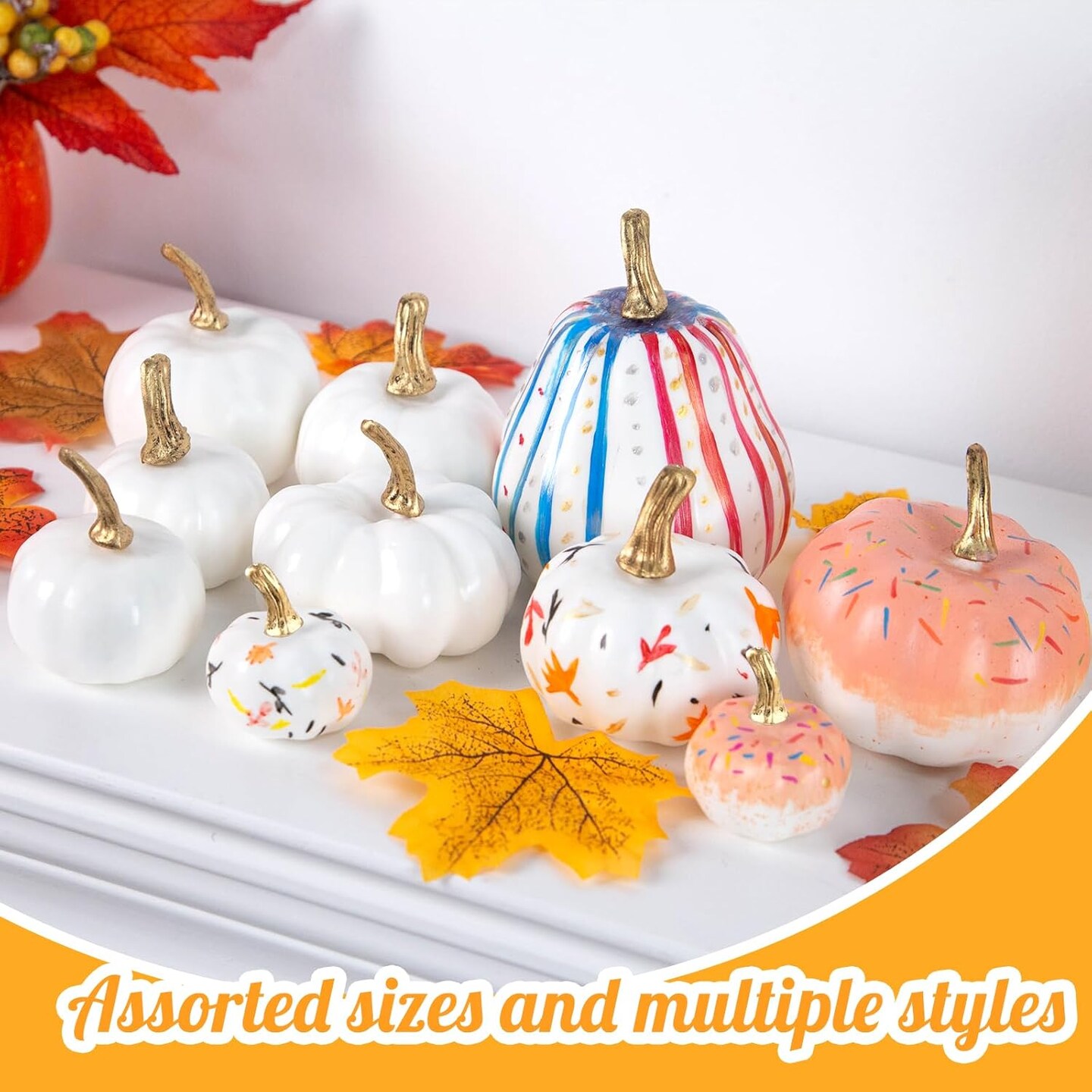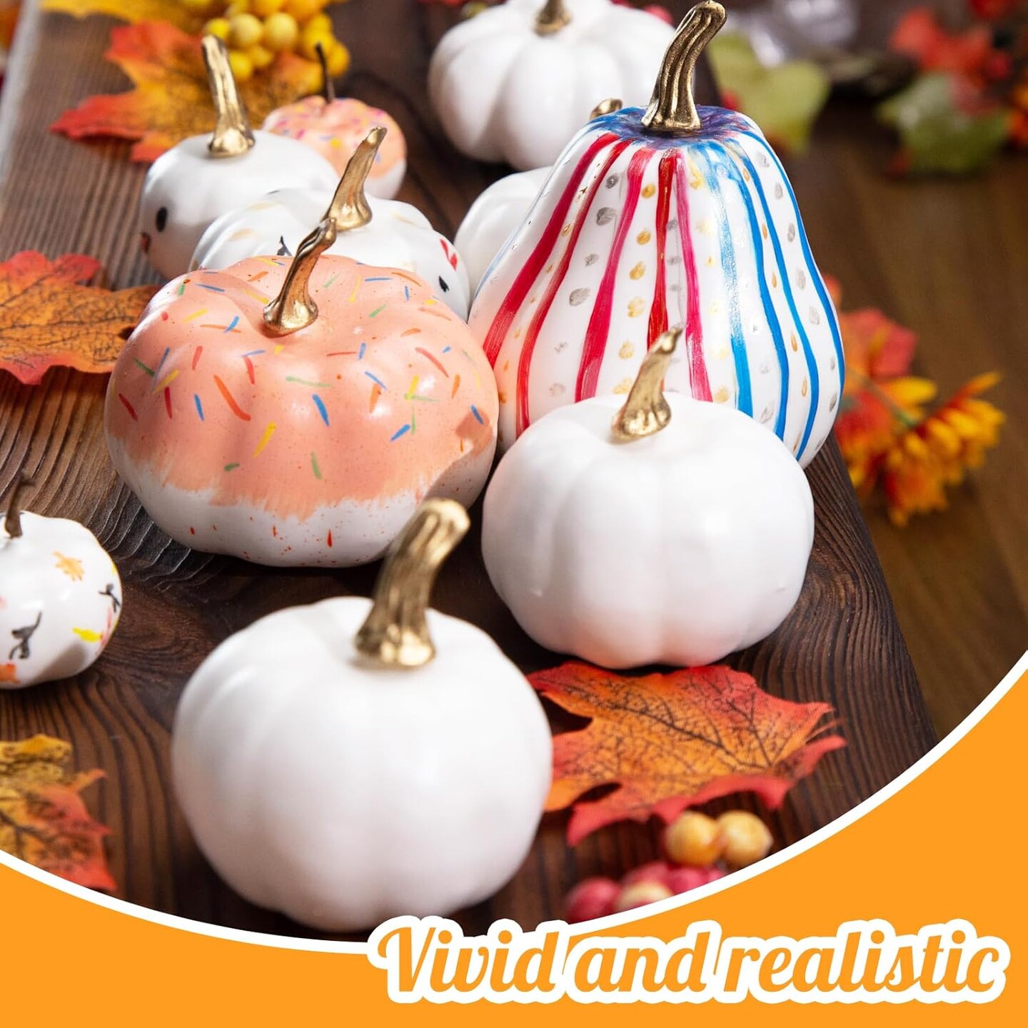 Artificial Pumpkins Decorative White Foam Pumpkins for Halloween Thanksgiving Farmhouse Table Centerpieces Decor