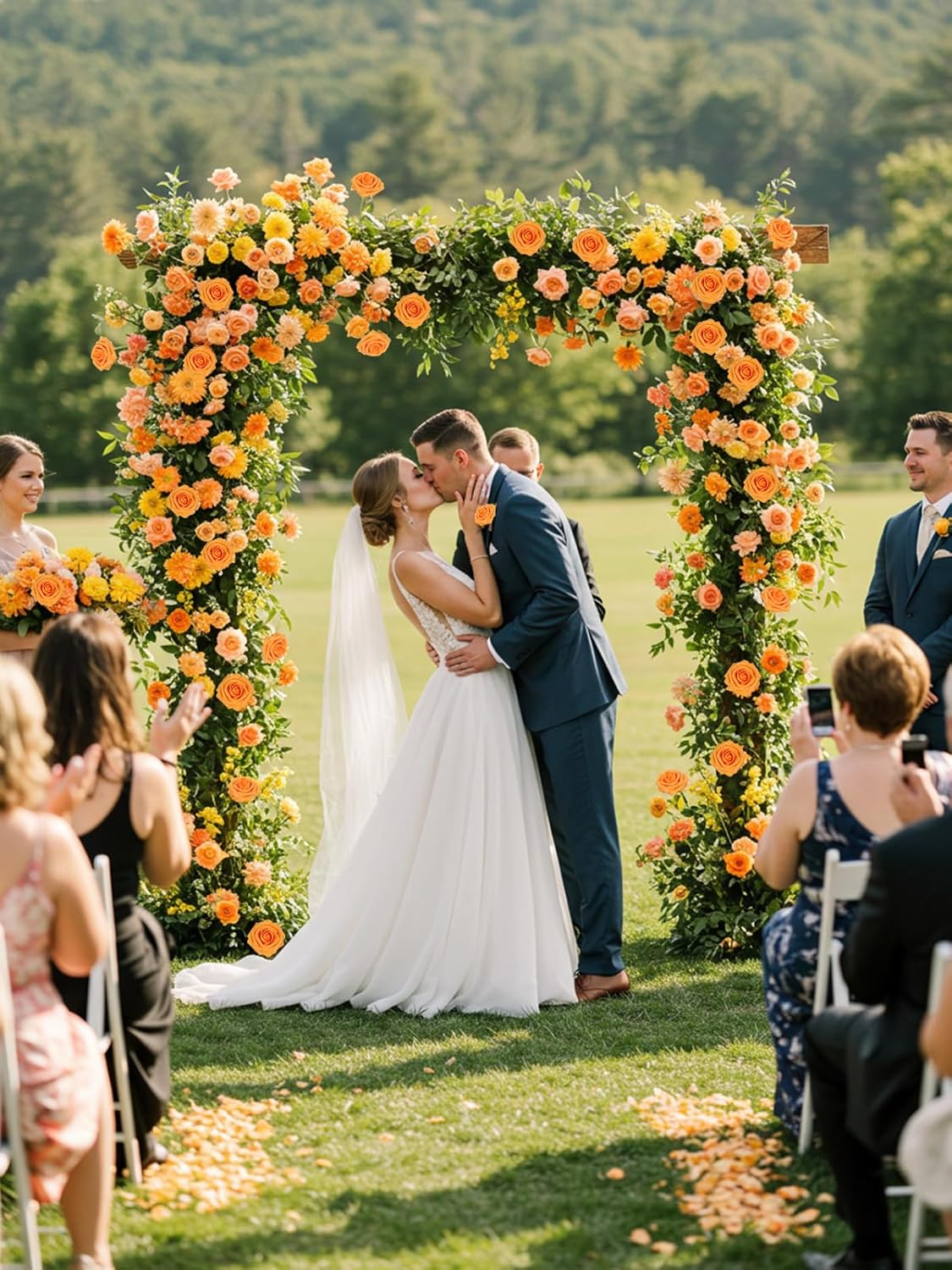 Artificial Rose Flowers 30PCS Real Touch Fake Flowers with Stem Orange Faux