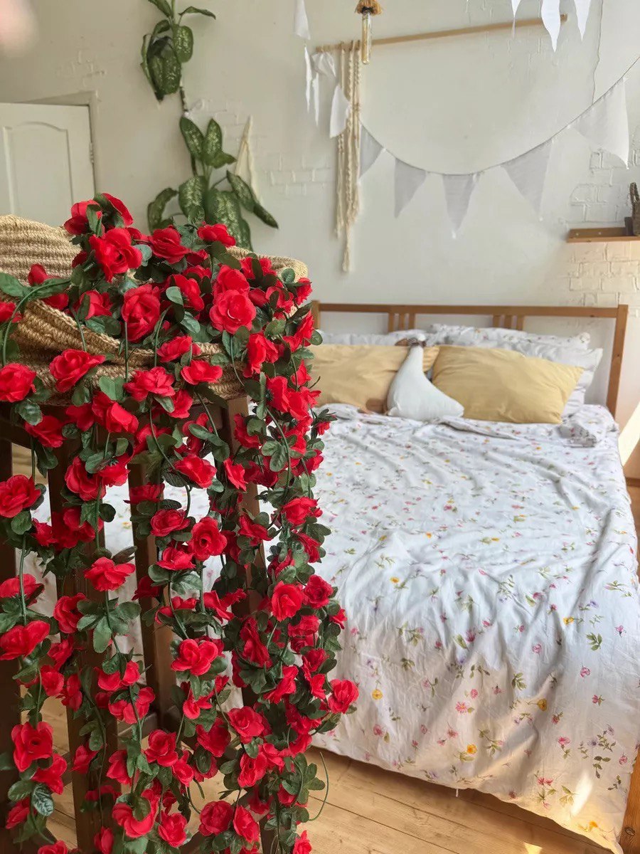 Artificial Rose Rattan Garland Fake Rose Vine Hanging Rose Ivy Red Flowers Home Hotel Office Wedding Party Garden Craft Art Decoration