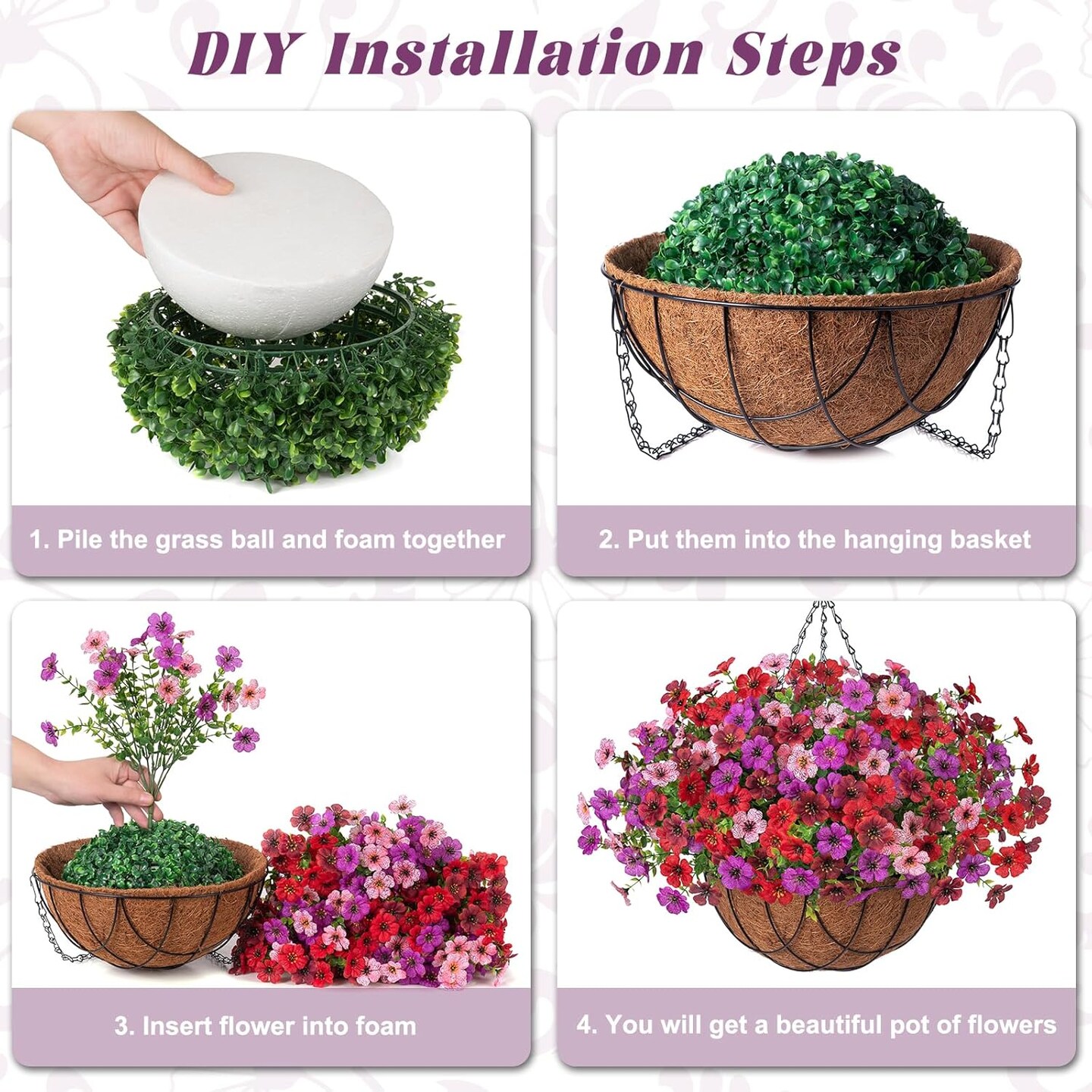 Artificial Silk Flowers Hanging Baskets Outdoors Indoors