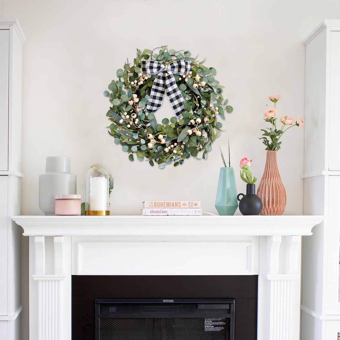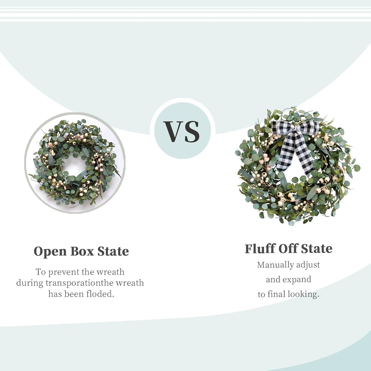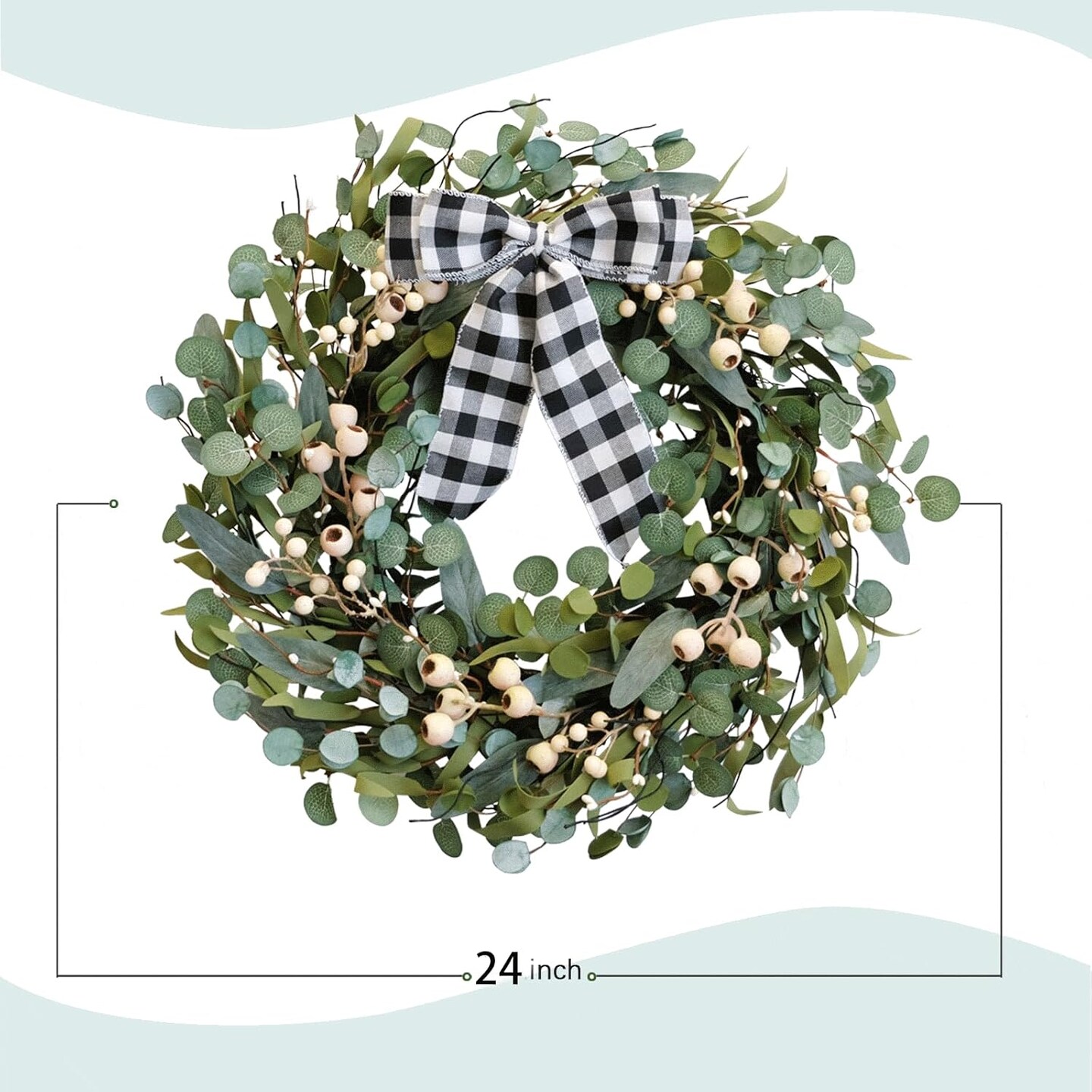 Artificial Spring/Summer Wreath 24 Inch Evergreen Wreaths for Front Door Eucalyptus Wreath with Berries for Outside All Seasons Indoor Outdoor Decor