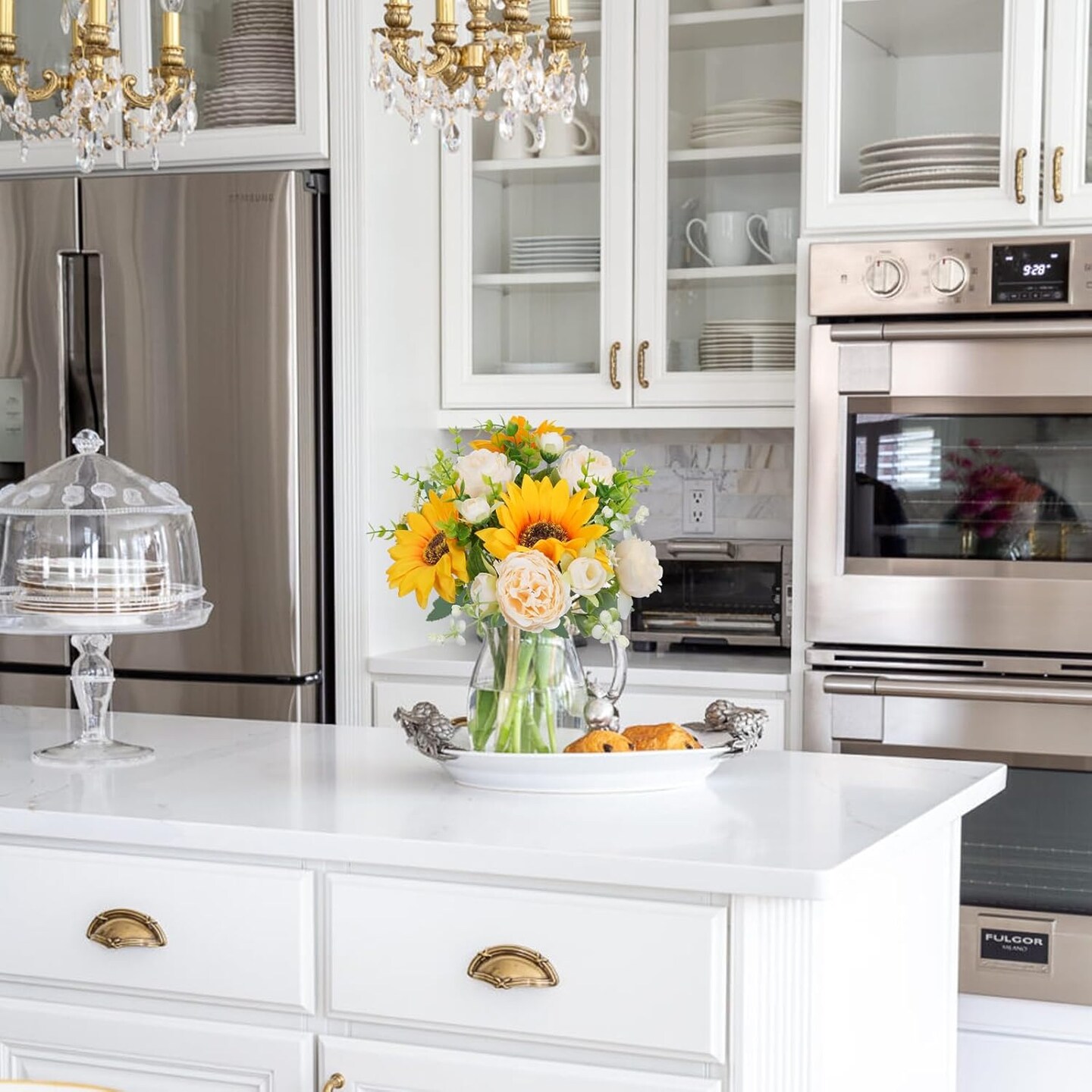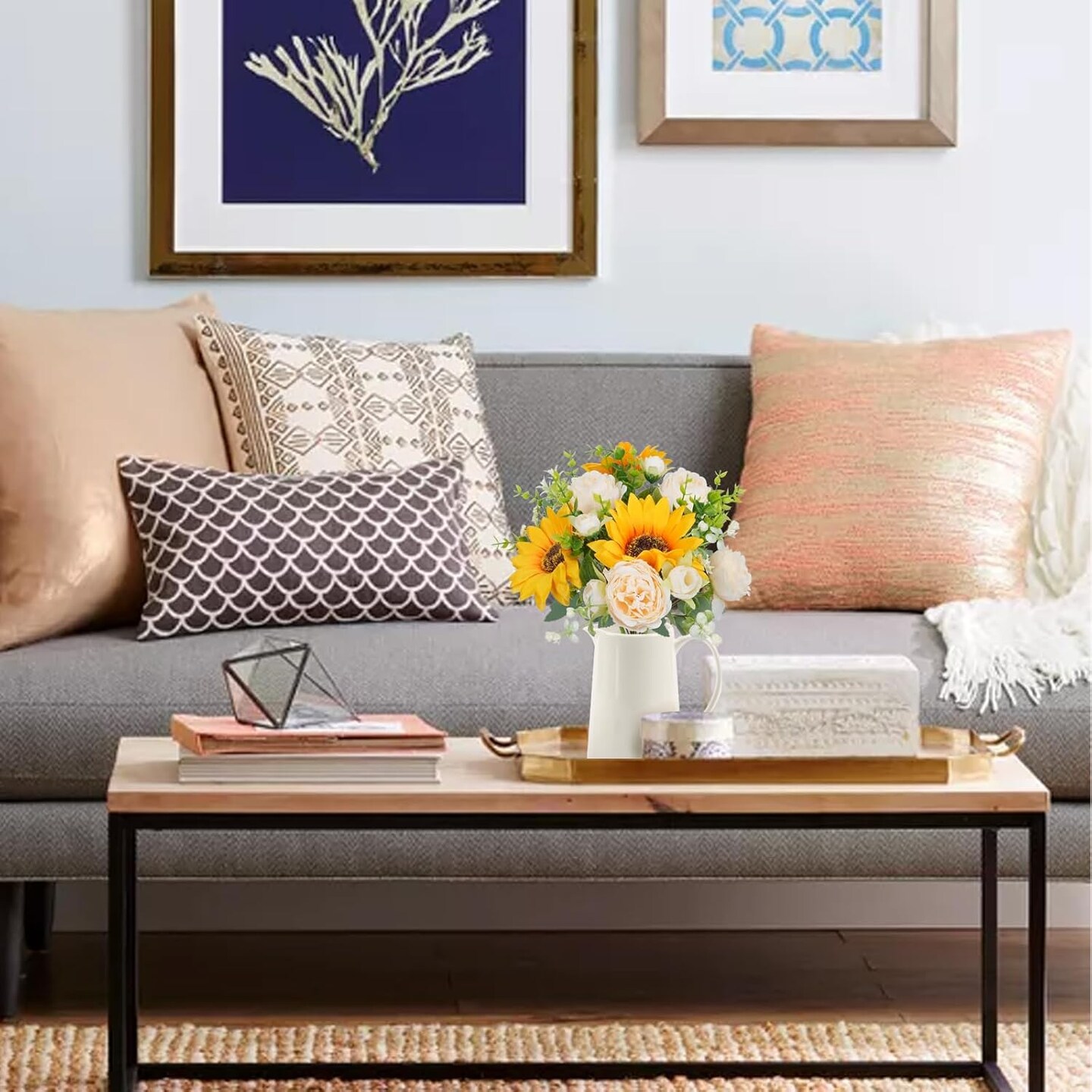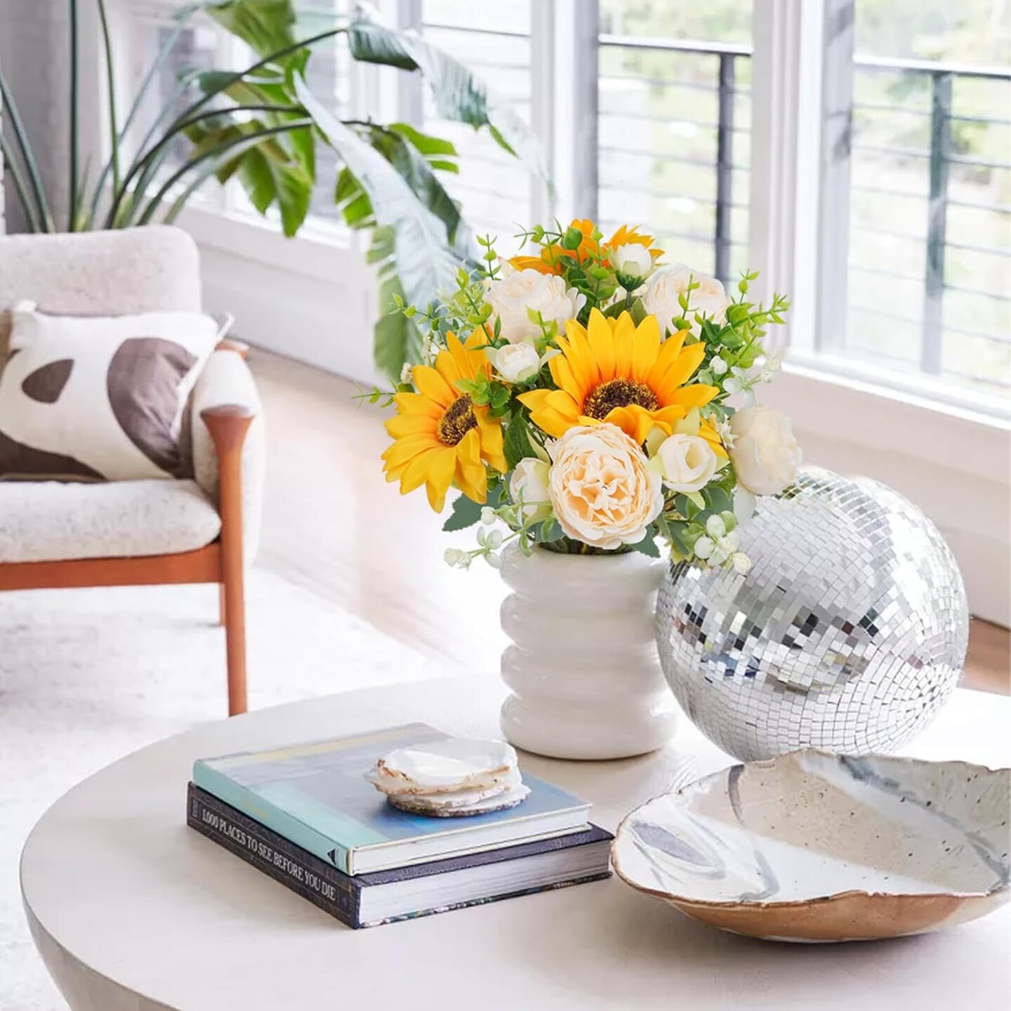 Artificial Summer Tabletop Floral Arrangements Flowers, 5 Pcs Fake Flowers Sunflowers Small Silk Flowers Faux Florals