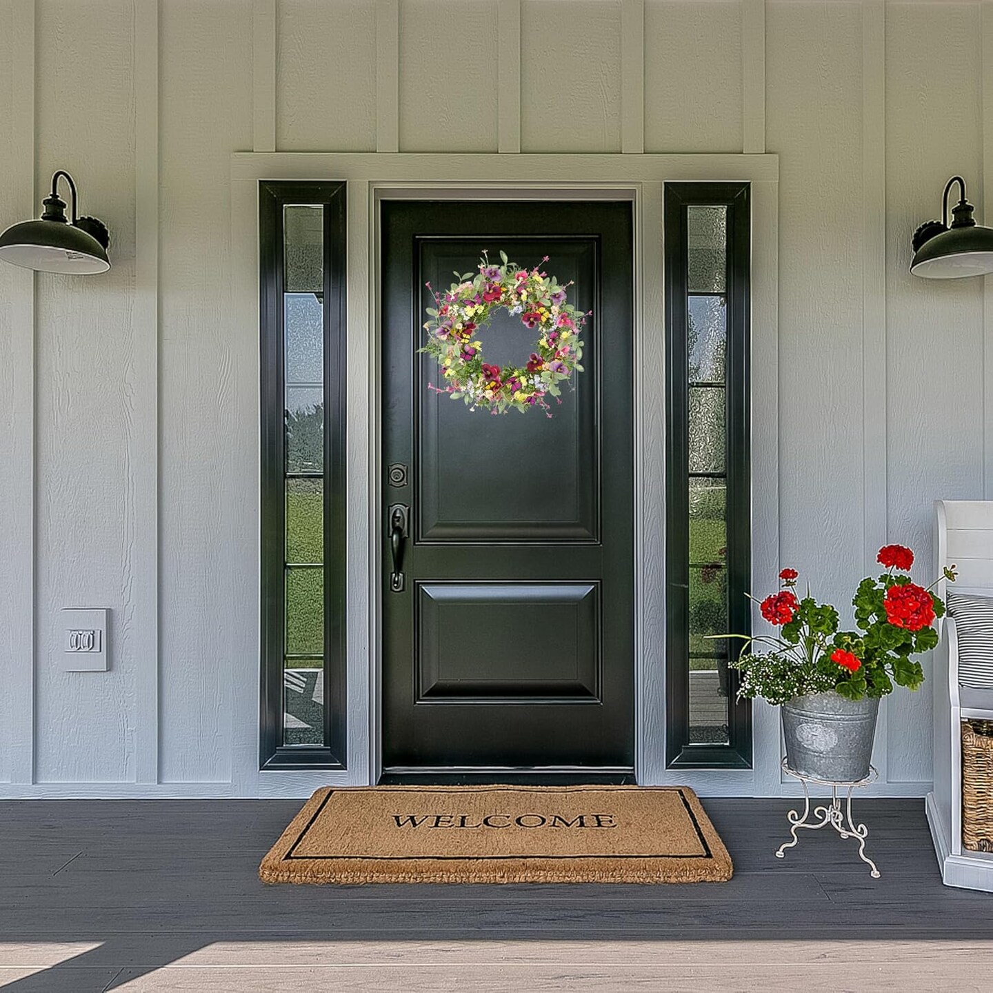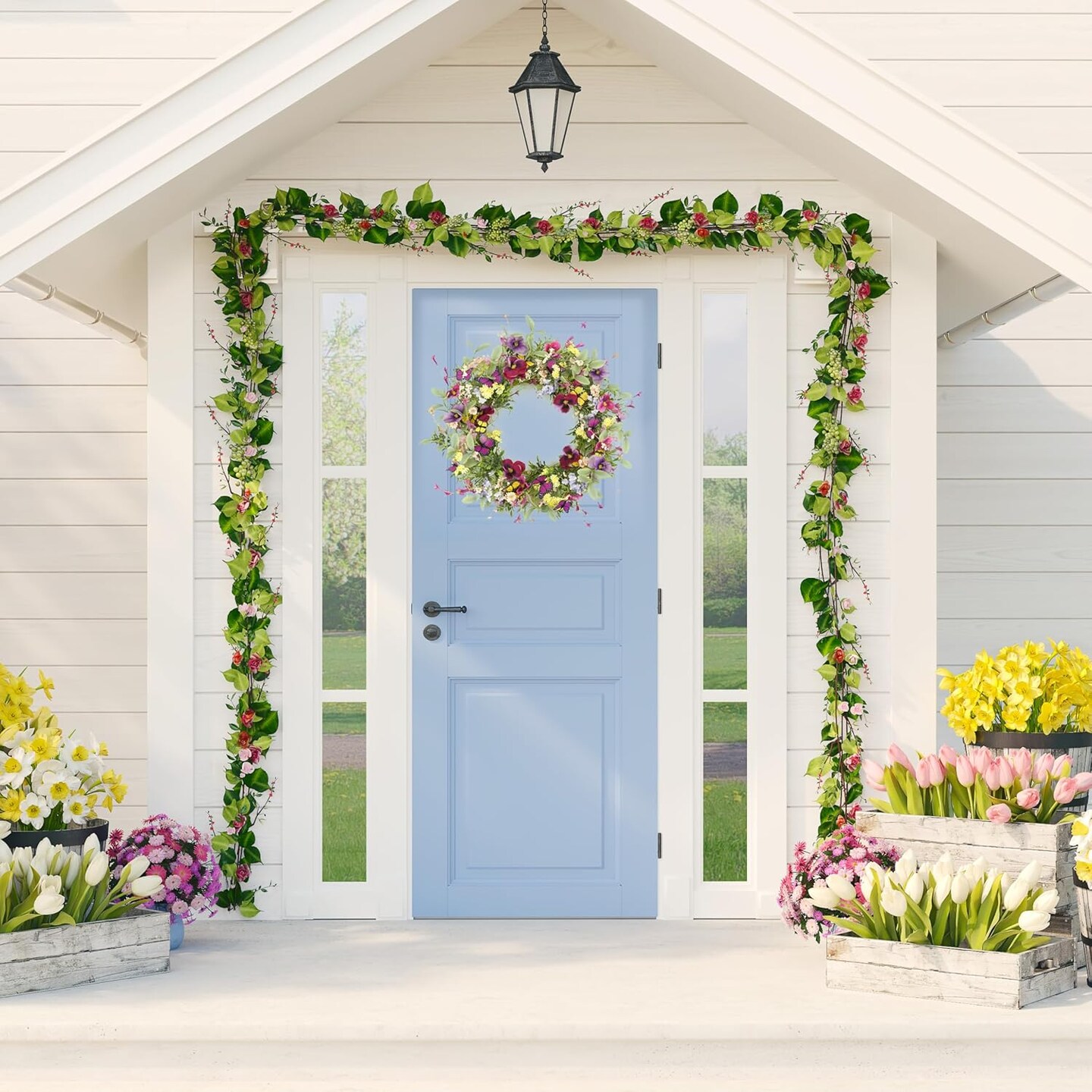 Artificial Summer Wreaths for Front Door Pansy Wreath Summer Wreath with Colorful Pansy,Berry,Daisy