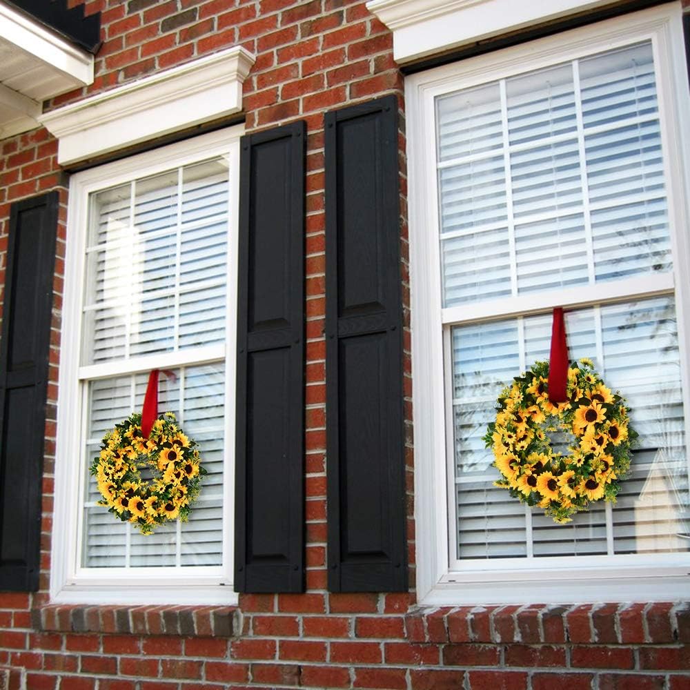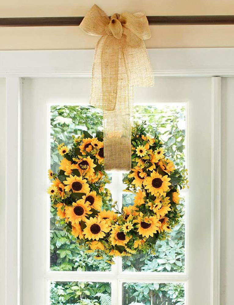 Artificial Sunflower Summer Wreath - 16 Inch Decorative Fake Flower Wreath with Yellow Sunflower and Green Leaves