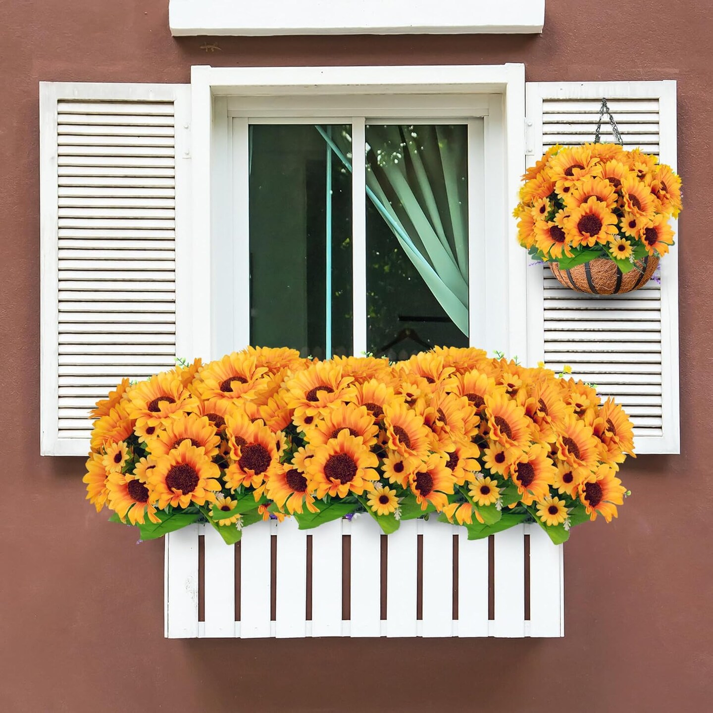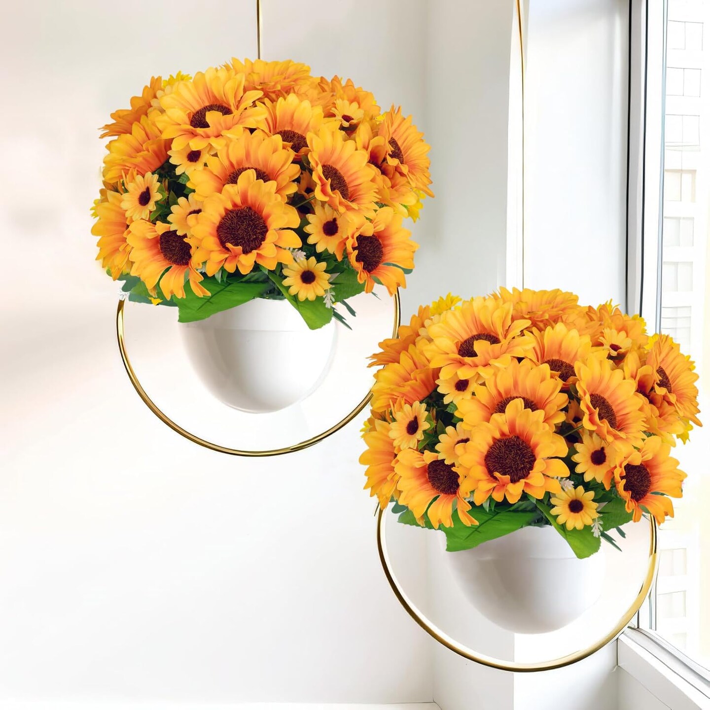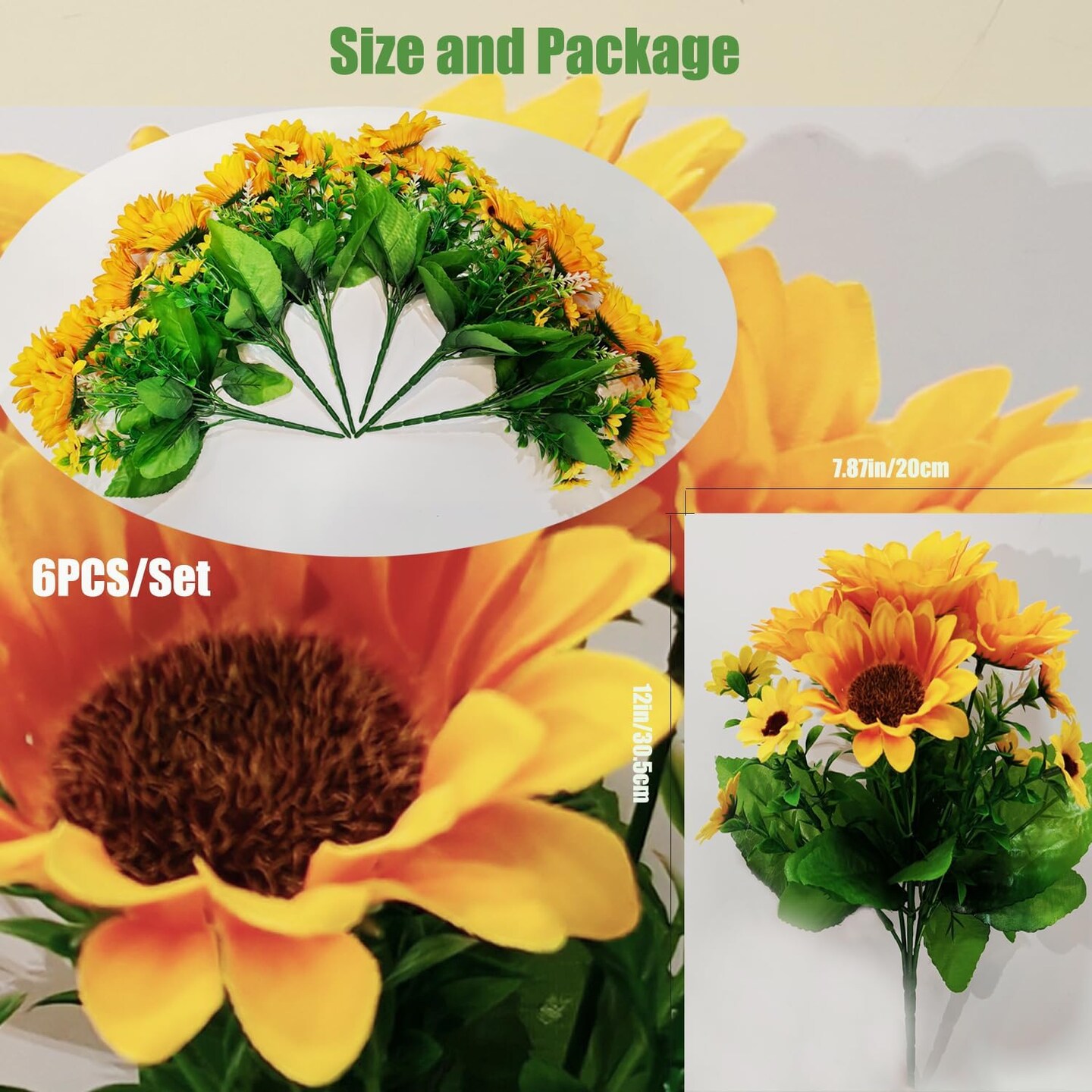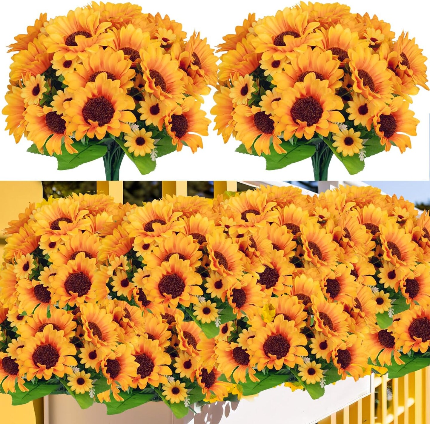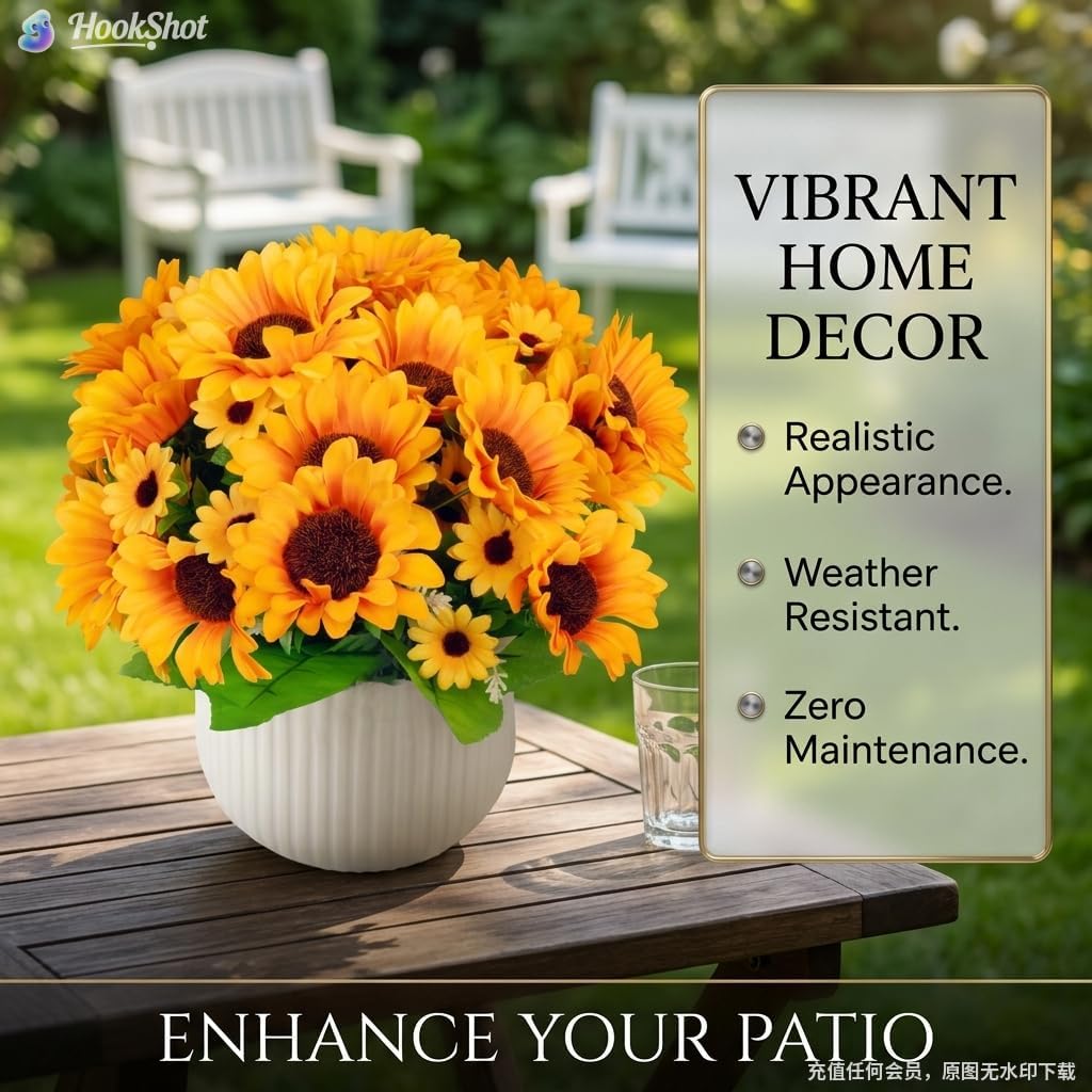 Artificial Sunflowers Silk Flower 6 Bundles Outdoor UV Resistant Fake Wildflowers Spring Decoration Faux Greenery Shrubs Plants for Home Indoor Outside Garden Vase Wedding Decor(Sunflower)