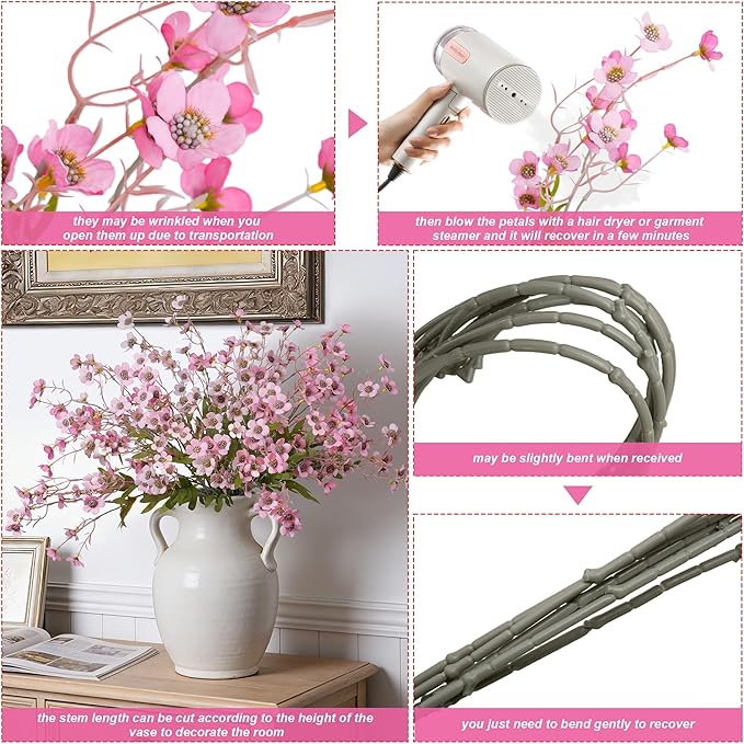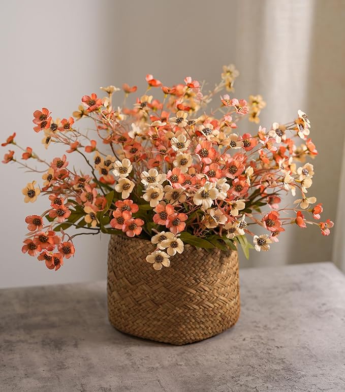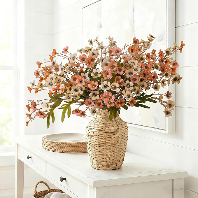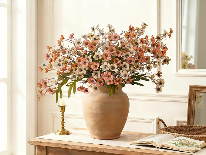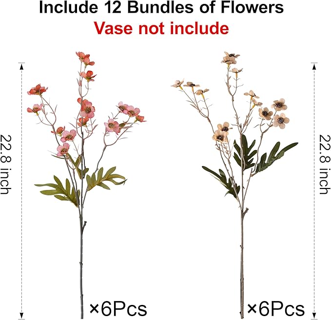 Artificial Wild Flowers Indoor, 12 Pcs Long Stems Fake Flowers Silk Faux Flowers for Vase Filler Table Centerpiece Floral Arrangement Home Decor, Light Red Champagne