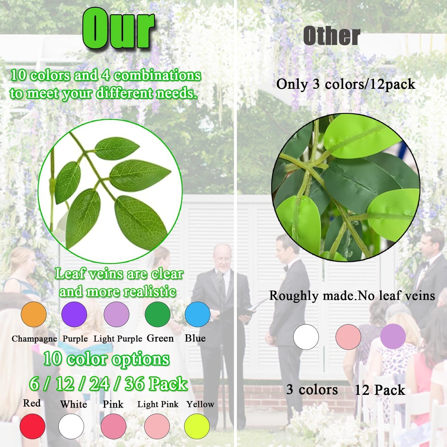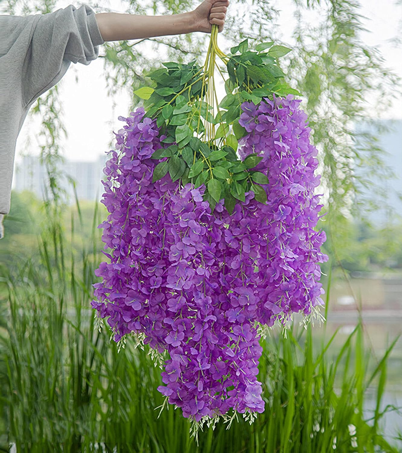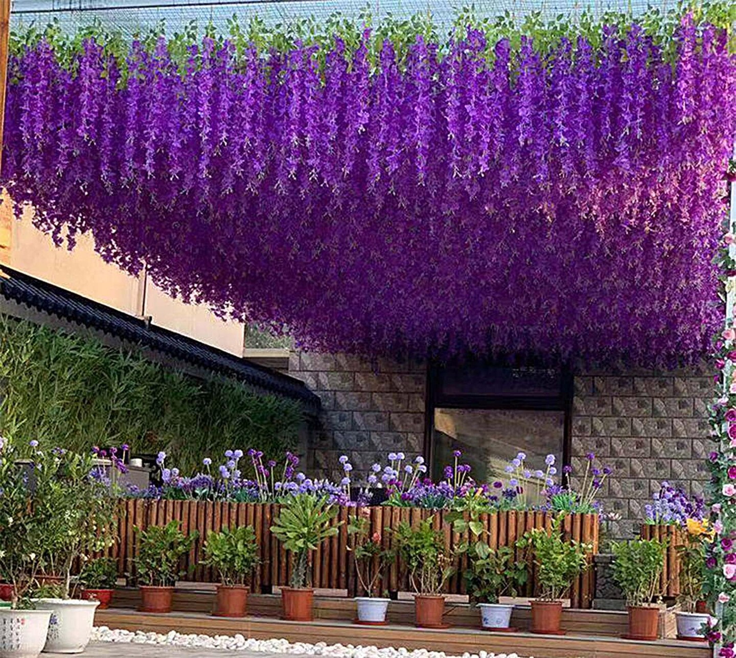 Artificial Wisteria Hanging Flowers Fake Wisteria Flower Garland Office Party Decoration (12, Red)