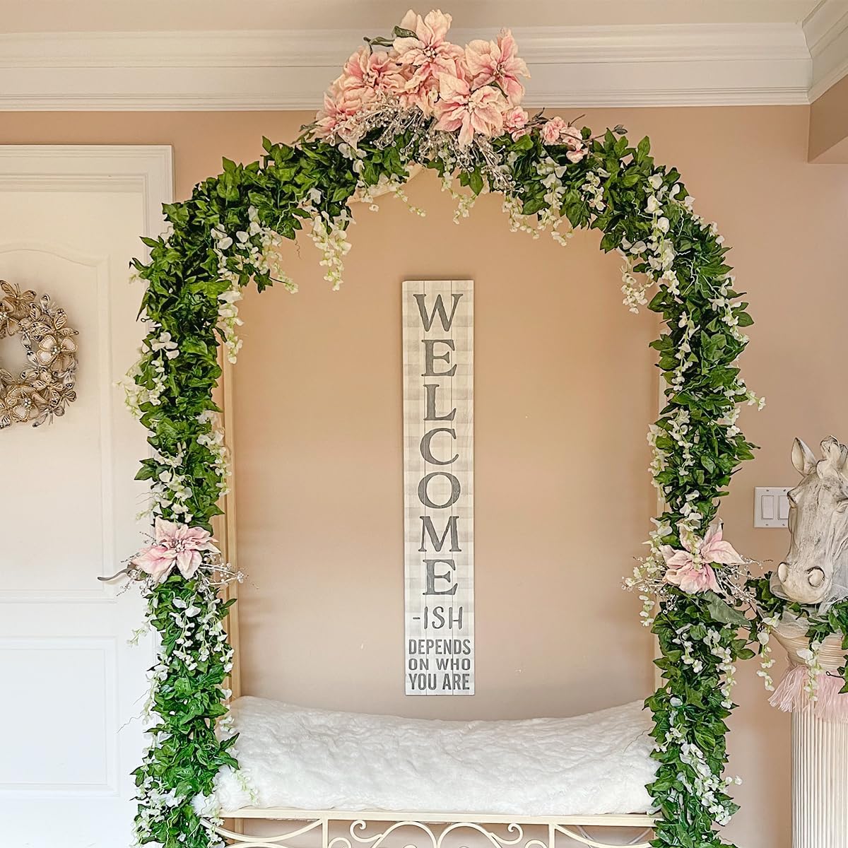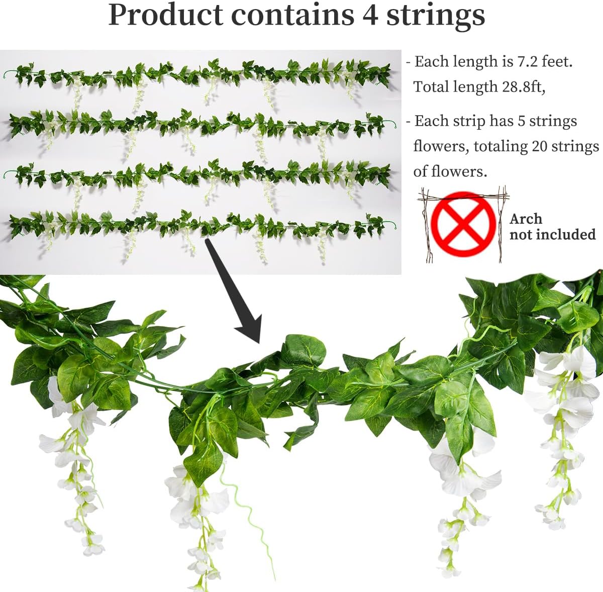 Artificial Wisteria Vine Garland – 28.8ft Silk Flowers with Ivy Leaves (4x7.2ft) for Wedding, Home Decor, Floral Arrangements – White