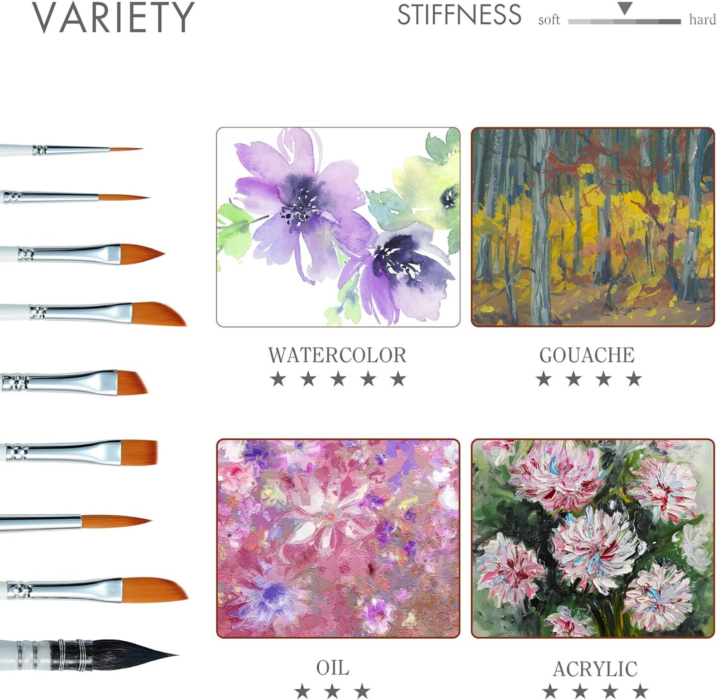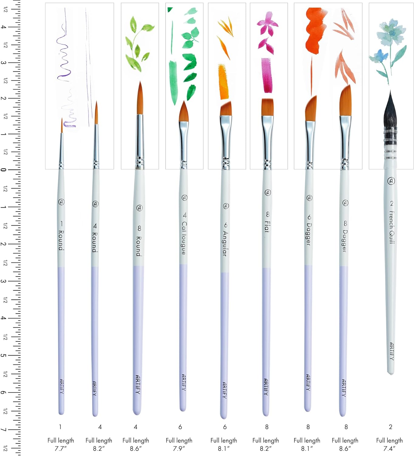 ARTIFY 9 PCS Floral Watercolor Brushes for Beginners & Pros | Artist Paint Brushes for Watercolor, Gouache & Acrylic | Round, Flat, Dagger, Cat’s Tongue, Detail Bruhes & Squirrel Hair Quill Brush