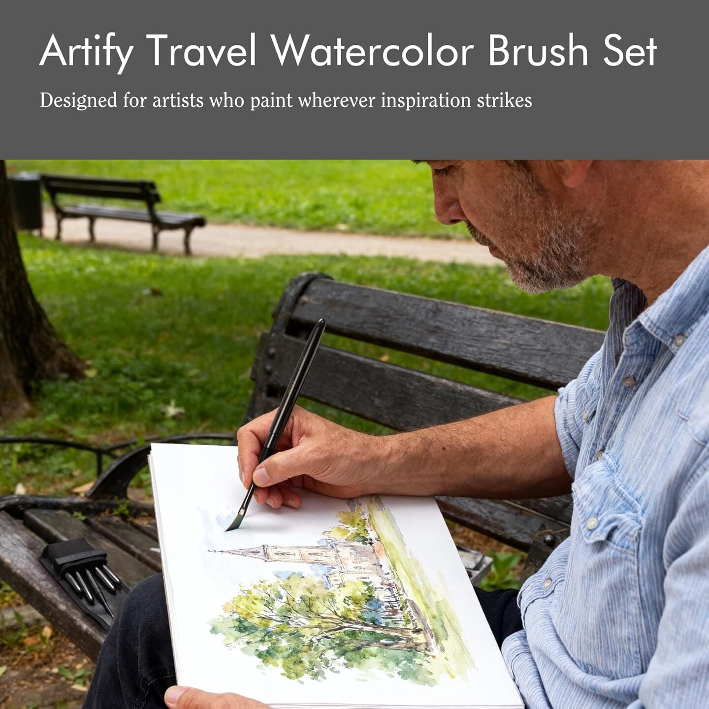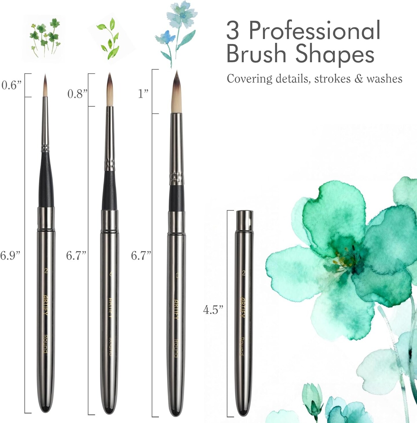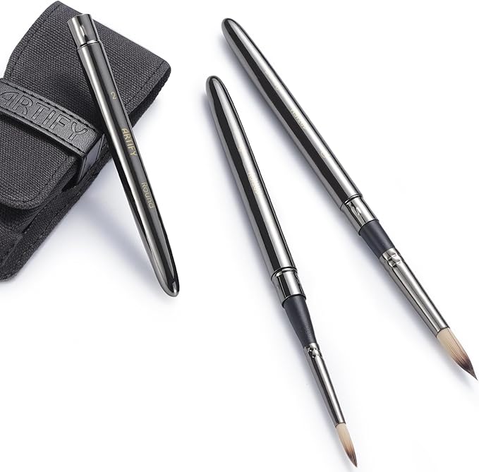 Artify Travel Watercolor Brushes, Outdoor Paint Brushes, Water Color Paint Brush Set with Anti-Rust Polished Metallic Gray Finish, Painting Brushes for Watercolor Gouache Ink - Gift for Artist (3PCS)