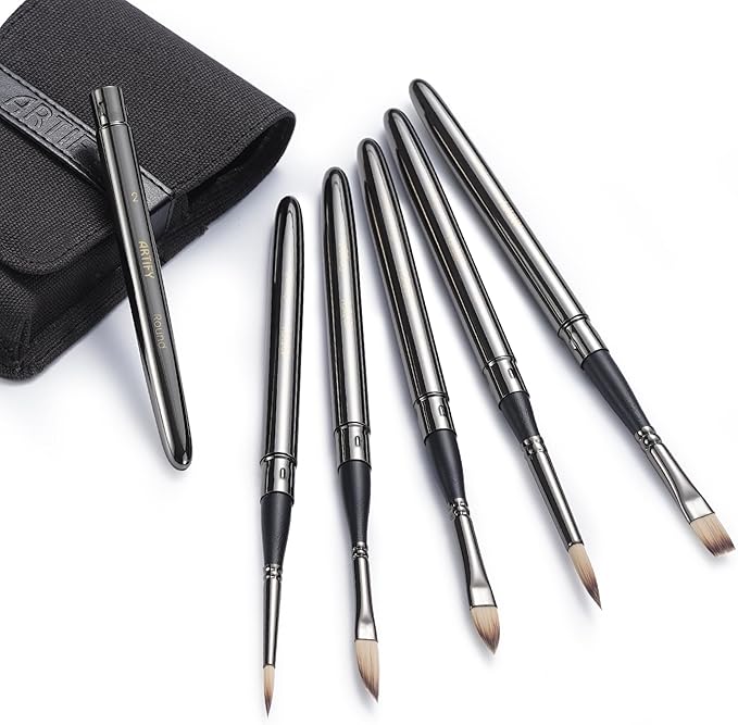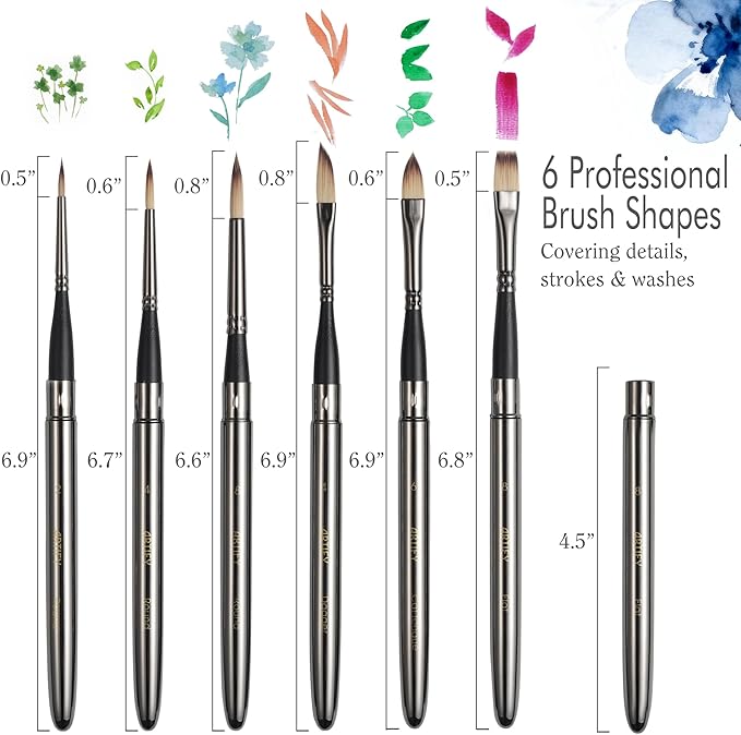 Artify Travel Watercolor Brushes, Outdoor Paint Brushes, Water Color Paint Brush Set with Anti-Rust Polished Metallic Gray Finish, Painting Brushes for Watercolor Gouache Ink - Gift for Artist (6PCS)