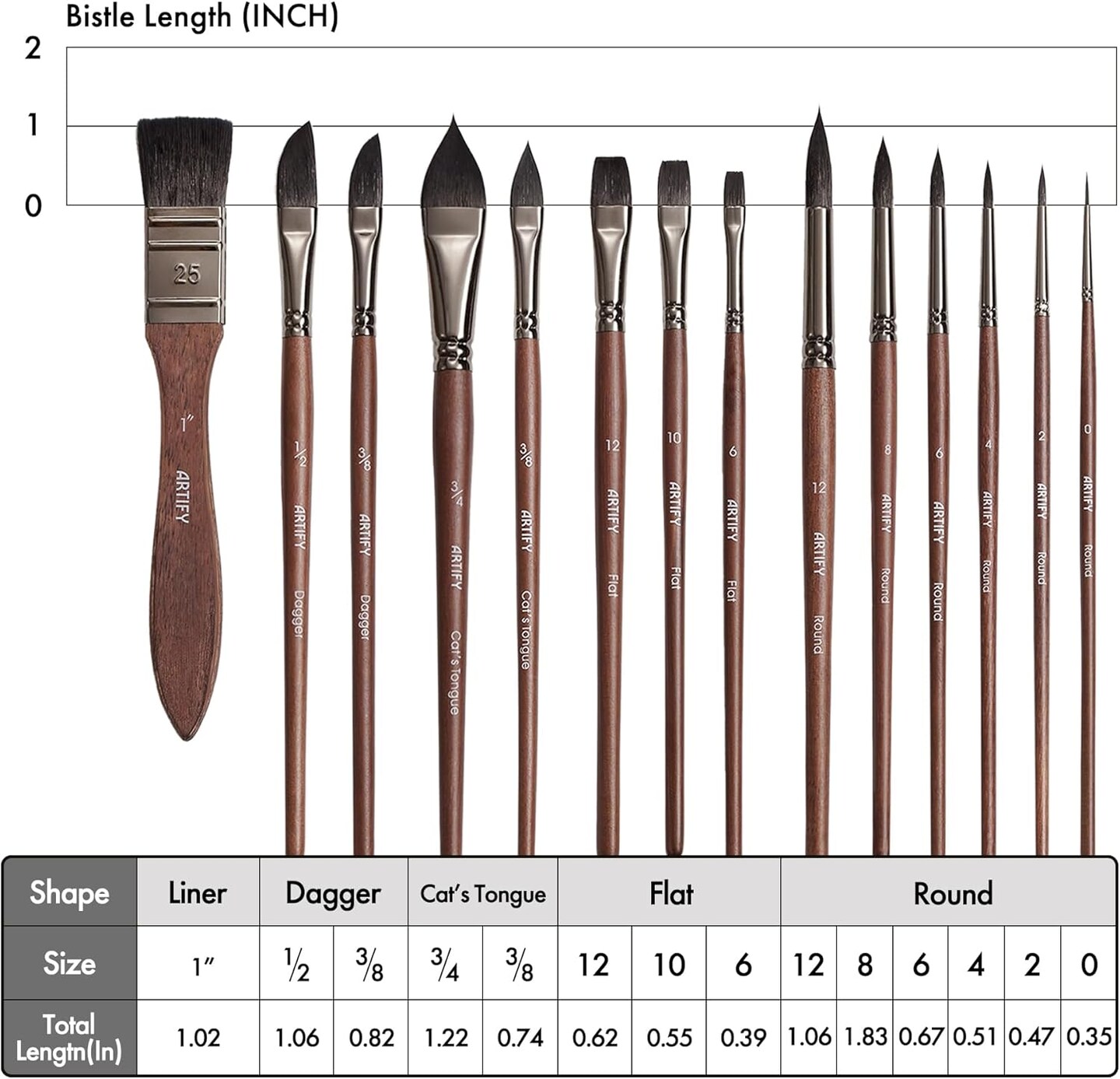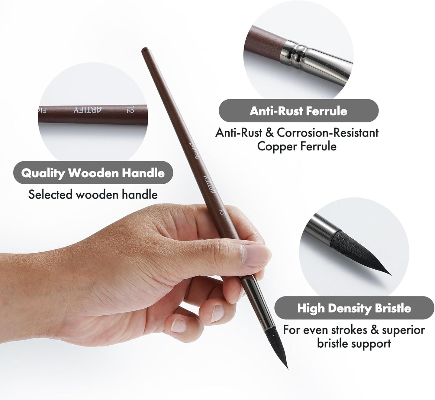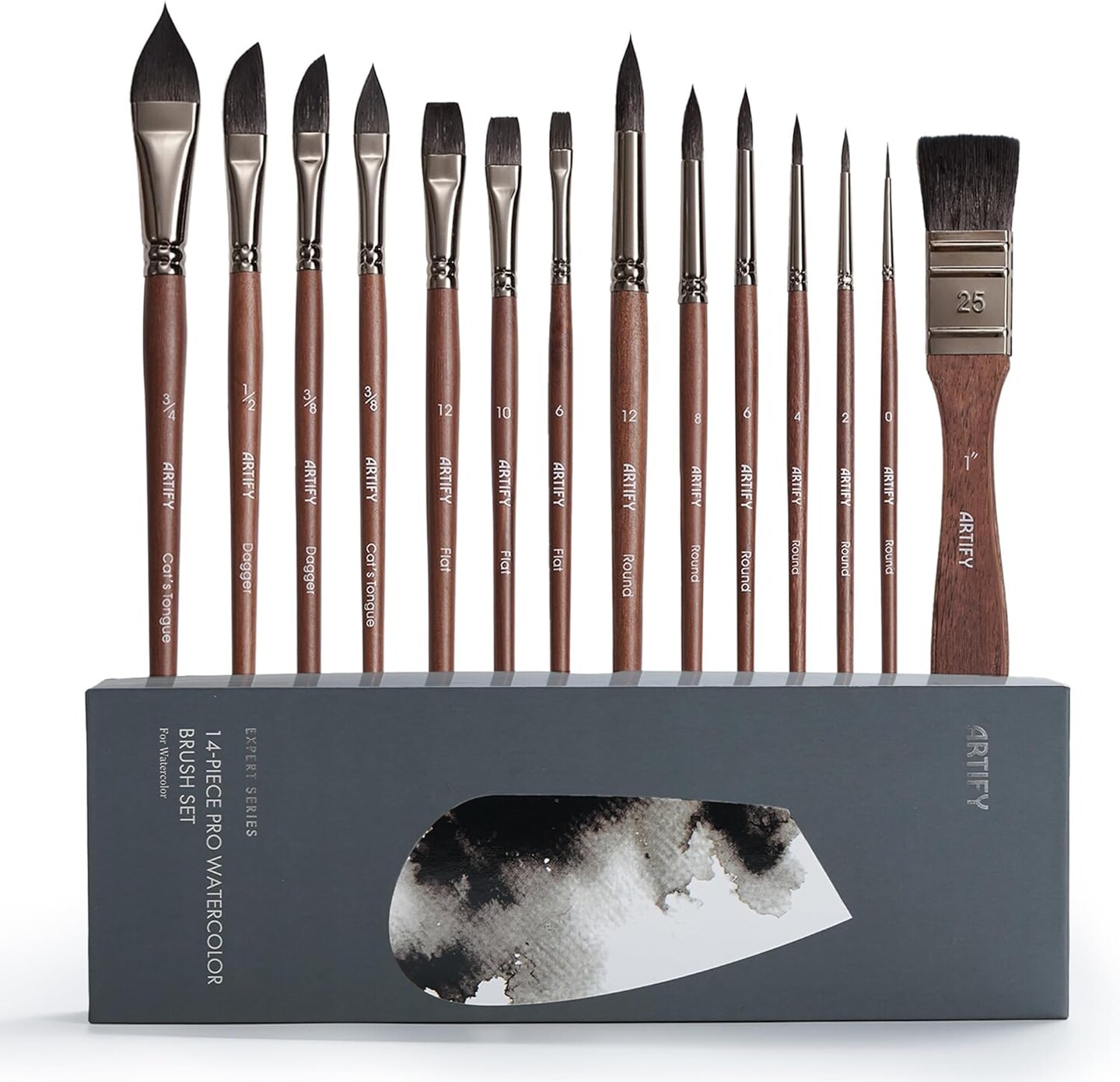 Artify Watercolor Brushes Professional, 14pcs Watercolor Paint Brush Set, Mixed Squirrel Hair - Balanced Spring & Water Absorption, Round/Flat/Filbert/Angled/Liner Tips, for Watercolor, Gouache