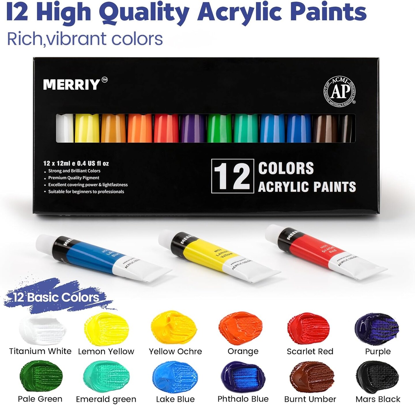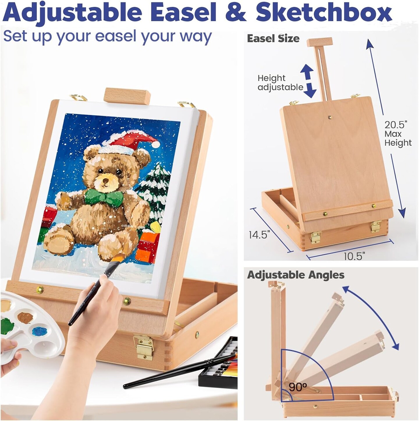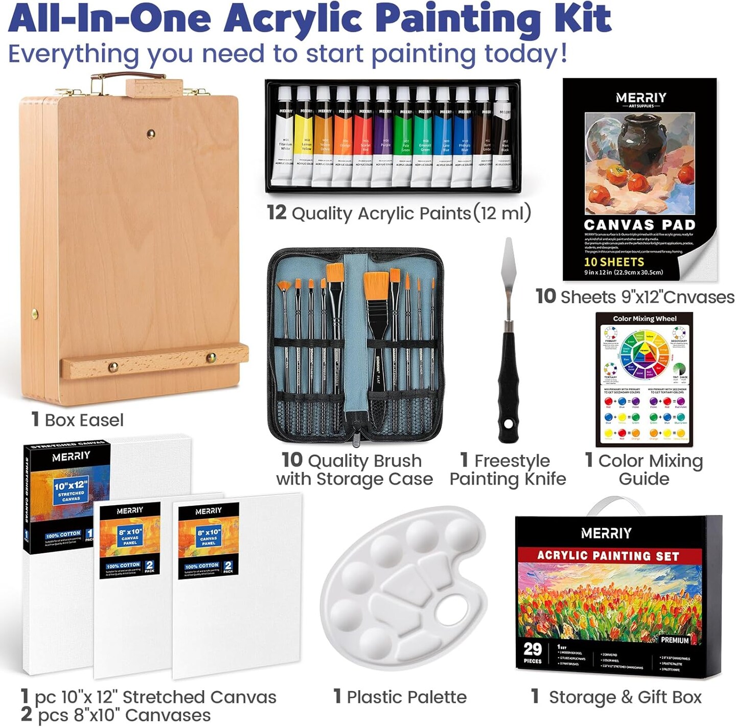 Artist Acrylic Paint Set, Painting Supplies Kit with Tabletop Sketch Box Easel, 12 Colors Acrylic Paints,10"x 12" Stretched Canvas,Premium Acrylic Painting Set for Artist Adults, Beginners