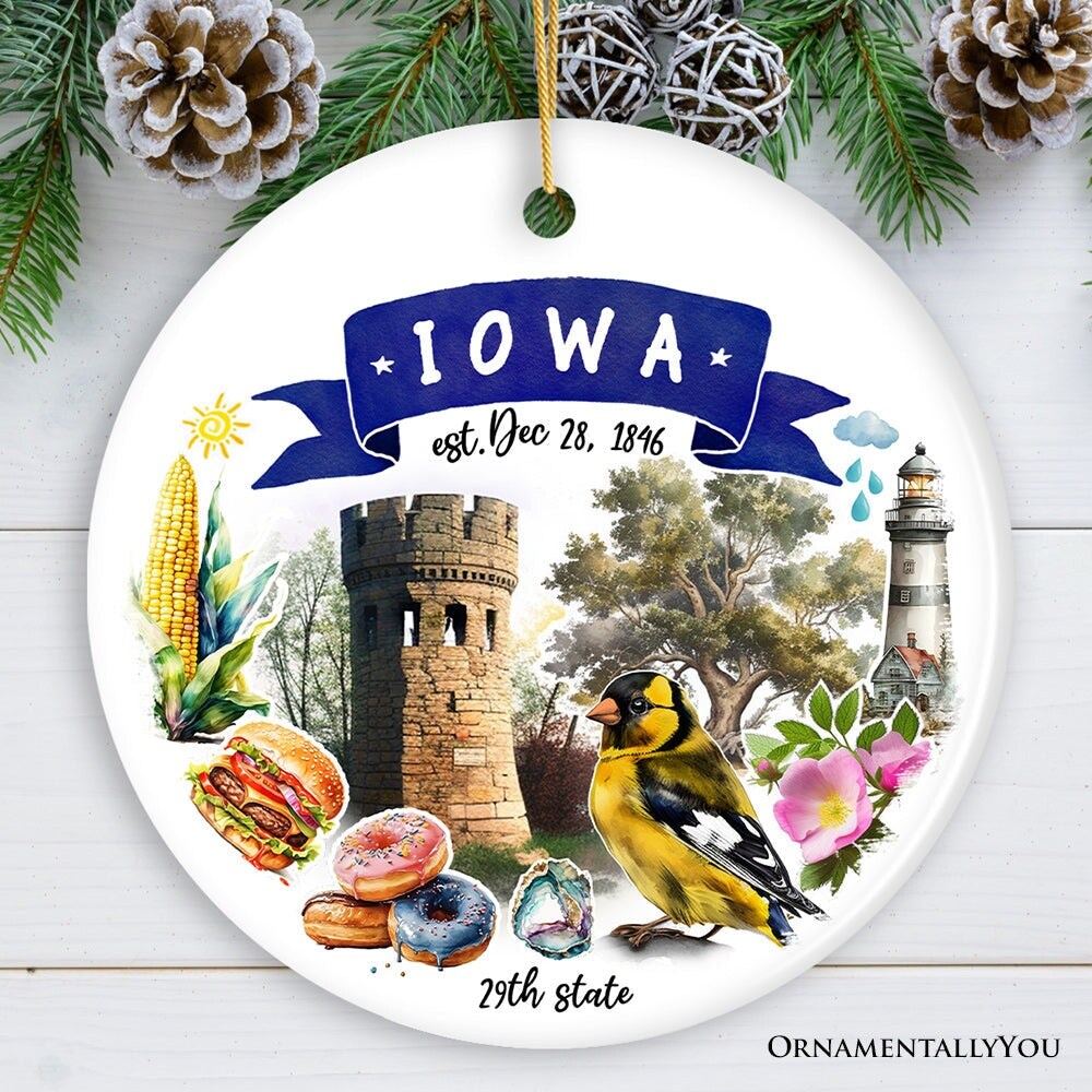 Artistic Iowa State Themes and Landmarks Christmas Ornament