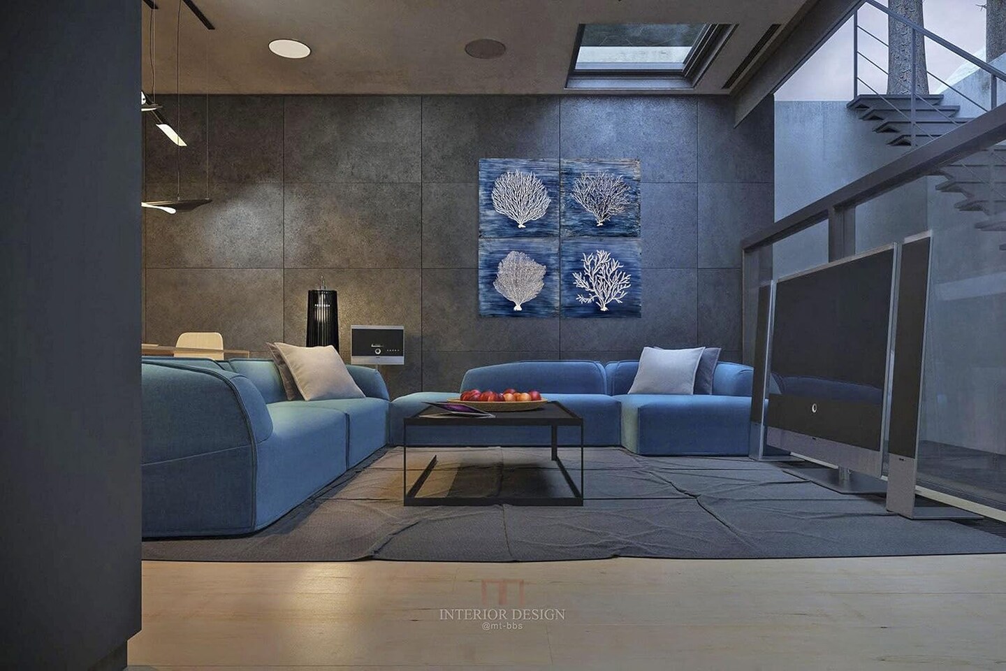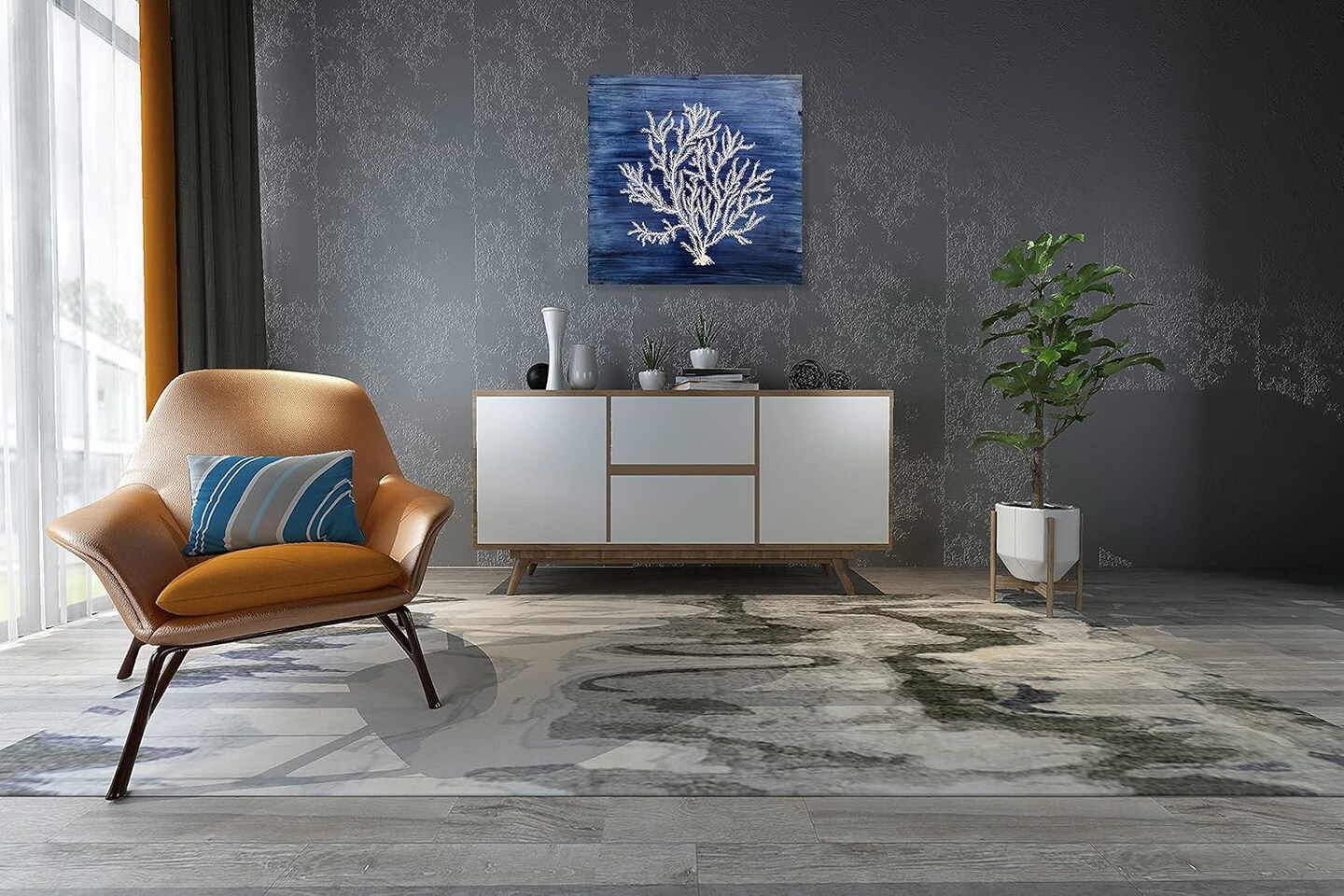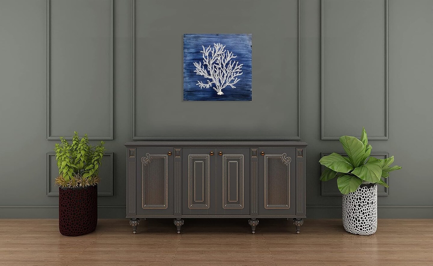 Arts Nautical Canvas Wall Art Hand Painted Navy Blue and White Coastal Painting Modern Abstract Tree Artwork