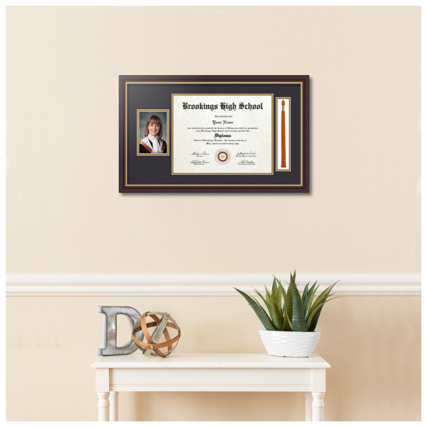 ArtToFrames 11x14 inch Diploma Frame with 5x7 Inch Image Opening and Tassel Opening - Framed with Black and Gold Mats, Comes with Regular Acrylic and Sawtooth Hanger for Wall Hanging (DIT-11x14)