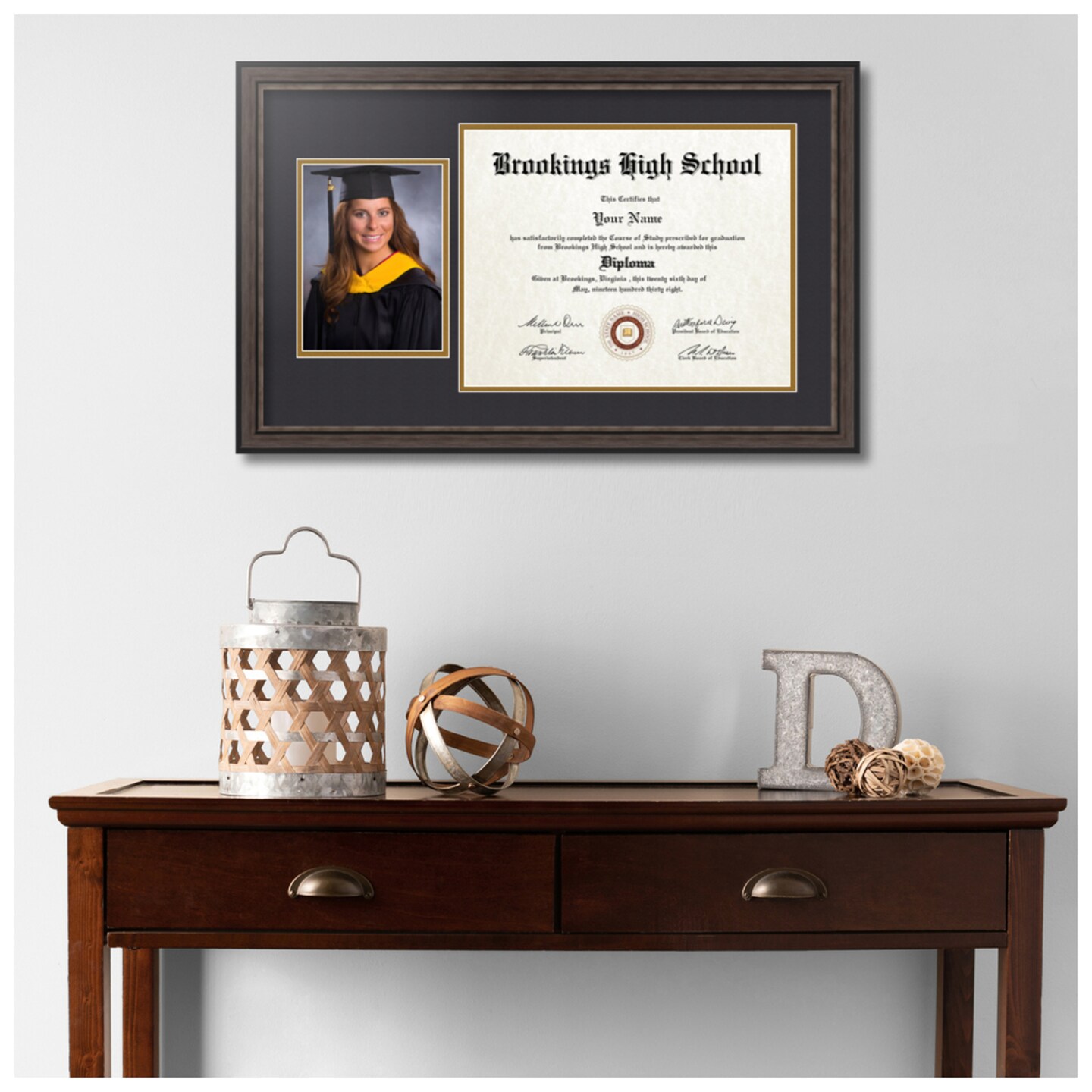 ArtToFrames 11x14 inch Diploma Frame with 6" x 8" Inch Image Opening - Framed with Black and Gold Mats, Comes with Regular Acrylic and Sawtooth Hanger for Wall Hanging (DT-11x14)