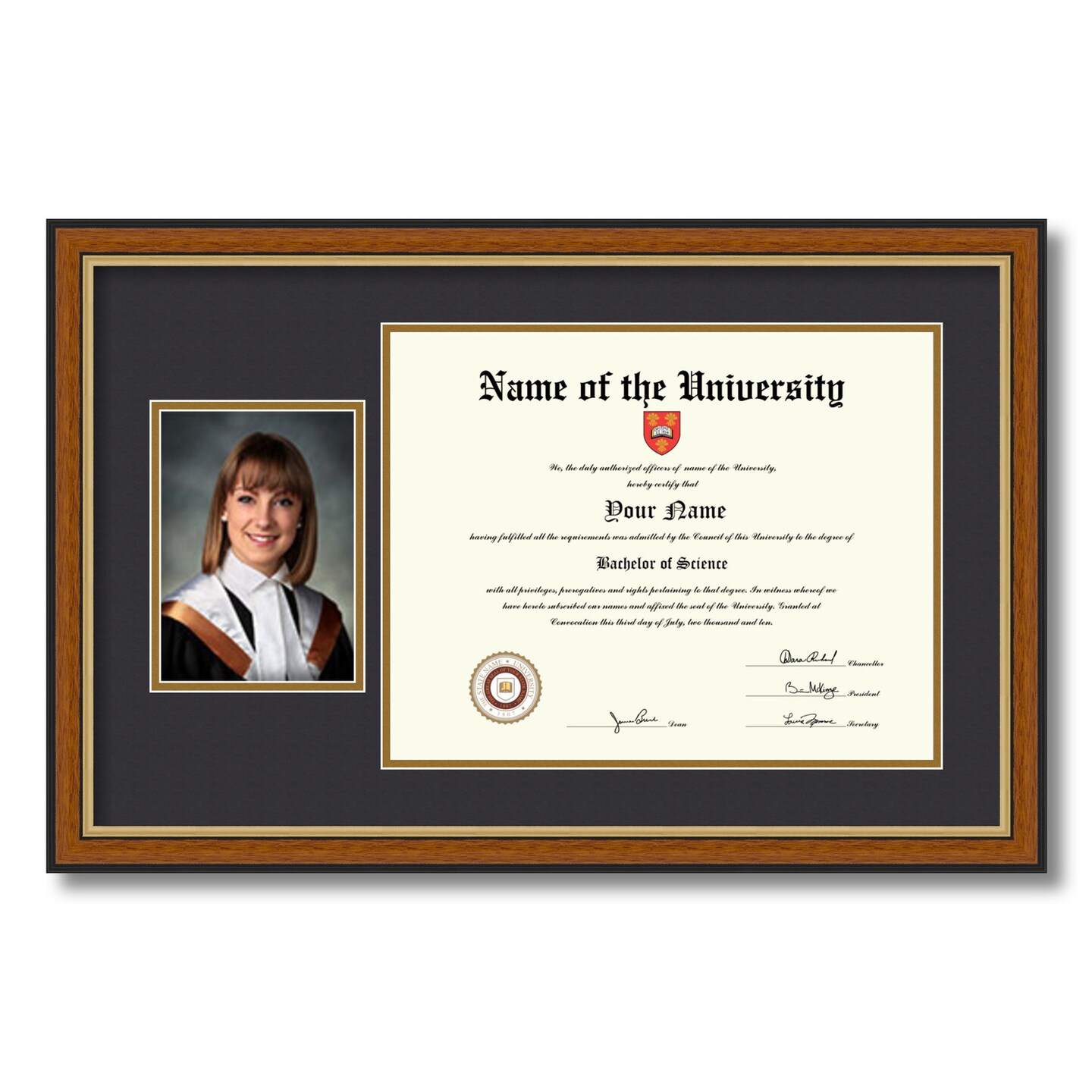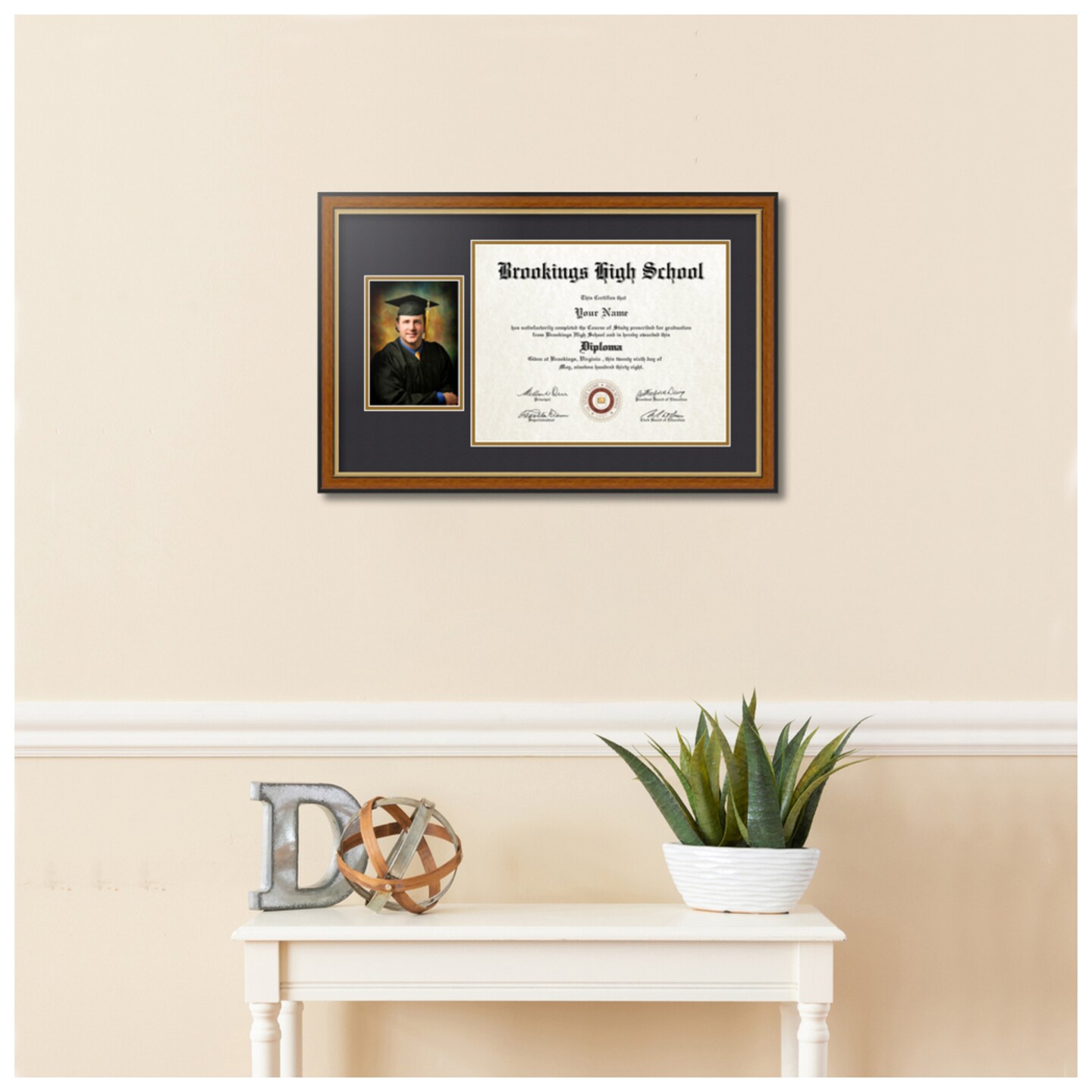 ArtToFrames 11x14 inch Diploma Frame with 6" x 8" Inch Image Opening - Framed with Black and Gold Mats, Comes with Regular Acrylic and Sawtooth Hanger for Wall Hanging (DT-11x14)