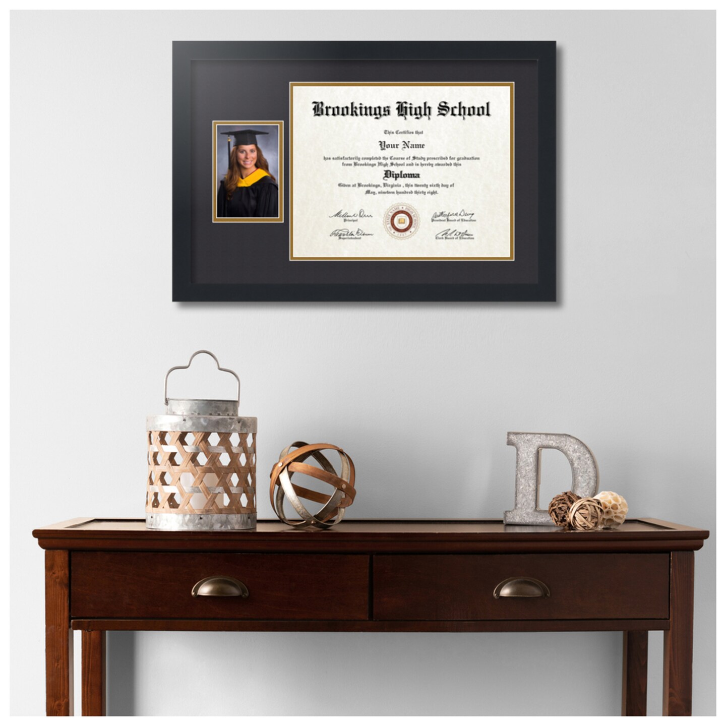 ArtToFrames 11x14 inch Diploma Frame with 6" x 8" Inch Image Opening - Framed with Black and Gold Mats, Comes with Regular Acrylic and Sawtooth Hanger for Wall Hanging (DT-11x14)