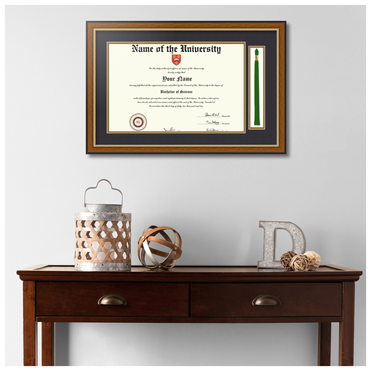ArtToFrames 11x17 inch Diploma Frame with Tassel Opening - Framed with Black and Gold Mats, Comes with Regular Acrylic and Sawtooth Hanger for Wall Hanging (DT-11x17)