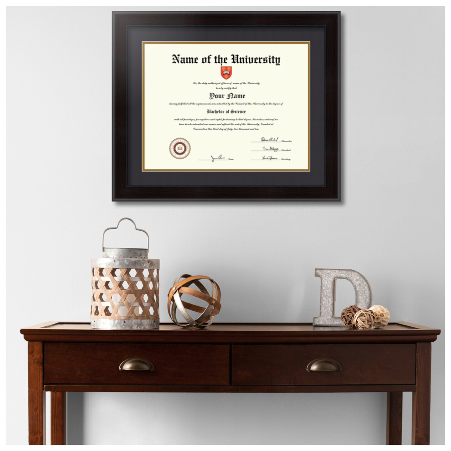 ArtToFrames 13x17 inch Diploma Frame - Framed with Black and Gold Mats, Comes with Regular Acrylic and Sawtooth Hanger for Wall Hanging (D-13x17)