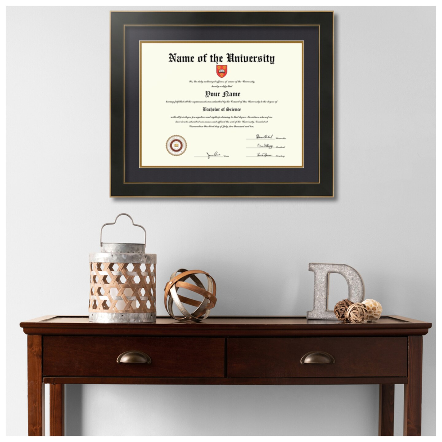 ArtToFrames 13x17 inch Diploma Frame - Framed with Black and Gold Mats, Comes with Regular Acrylic and Sawtooth Hanger for Wall Hanging (D-13x17)