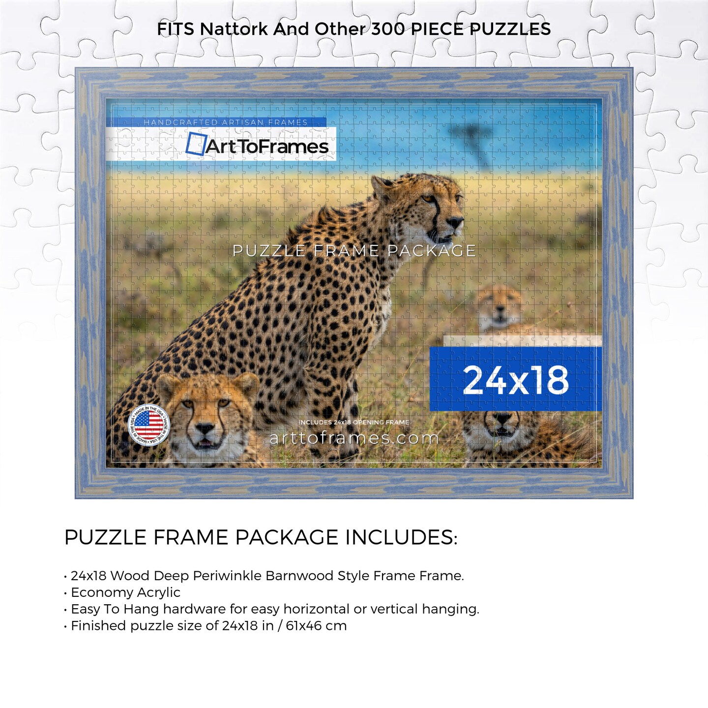 ArtToFrames 24x18 INCH / 61x46 CM Puzzle Frame for 300 piece Puzzles.This 1.50 Inch Custom MDF Frame for Puzzles Comes with Economy Acrylic, Available in Multiple Colors