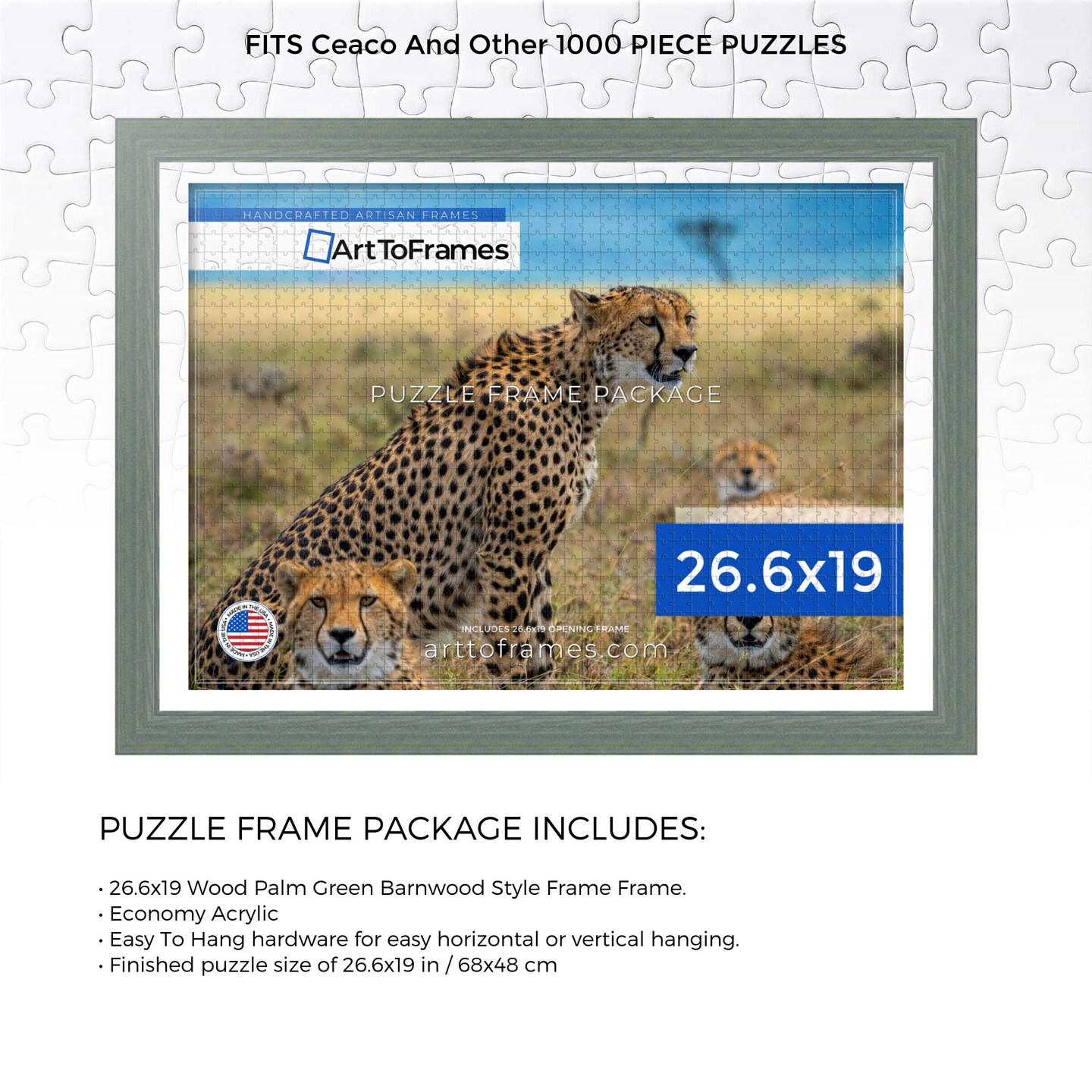 ArtToFrames 26.6x19 INCH / 68x48 CM Puzzle Frame for 1000 piece Puzzles.This 1.50 Inch Custom MDF Frame for Puzzles Comes with Economy Acrylic, Available in Multiple Colors