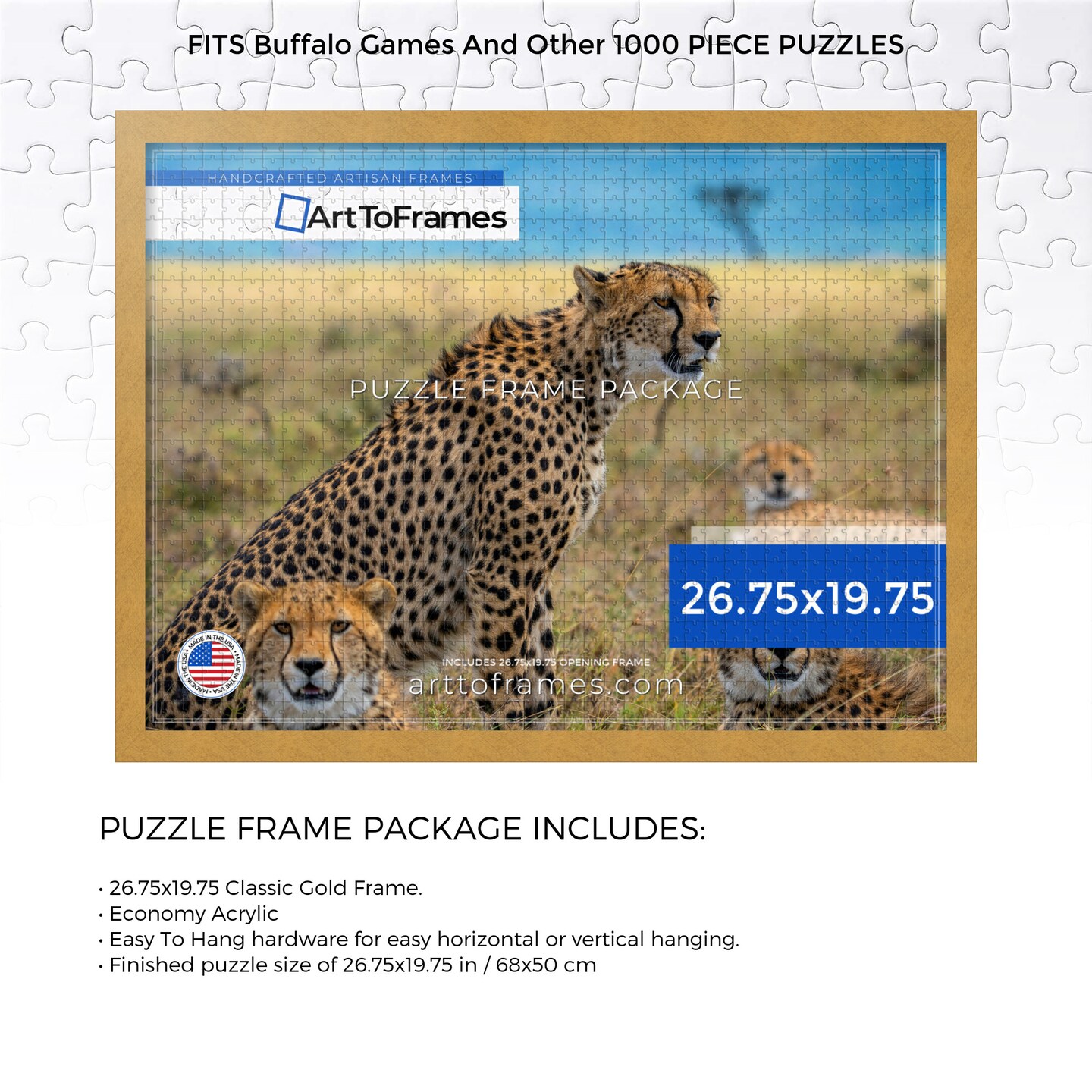 ArtToFrames 26.75x19.75 INCH / 68x50 CM Puzzle Frame for 1000 piece Puzzles.This 1.25 Inch Custom MDF Frame for Puzzles Comes with Economy Acrylic, Available in Multiple Colors