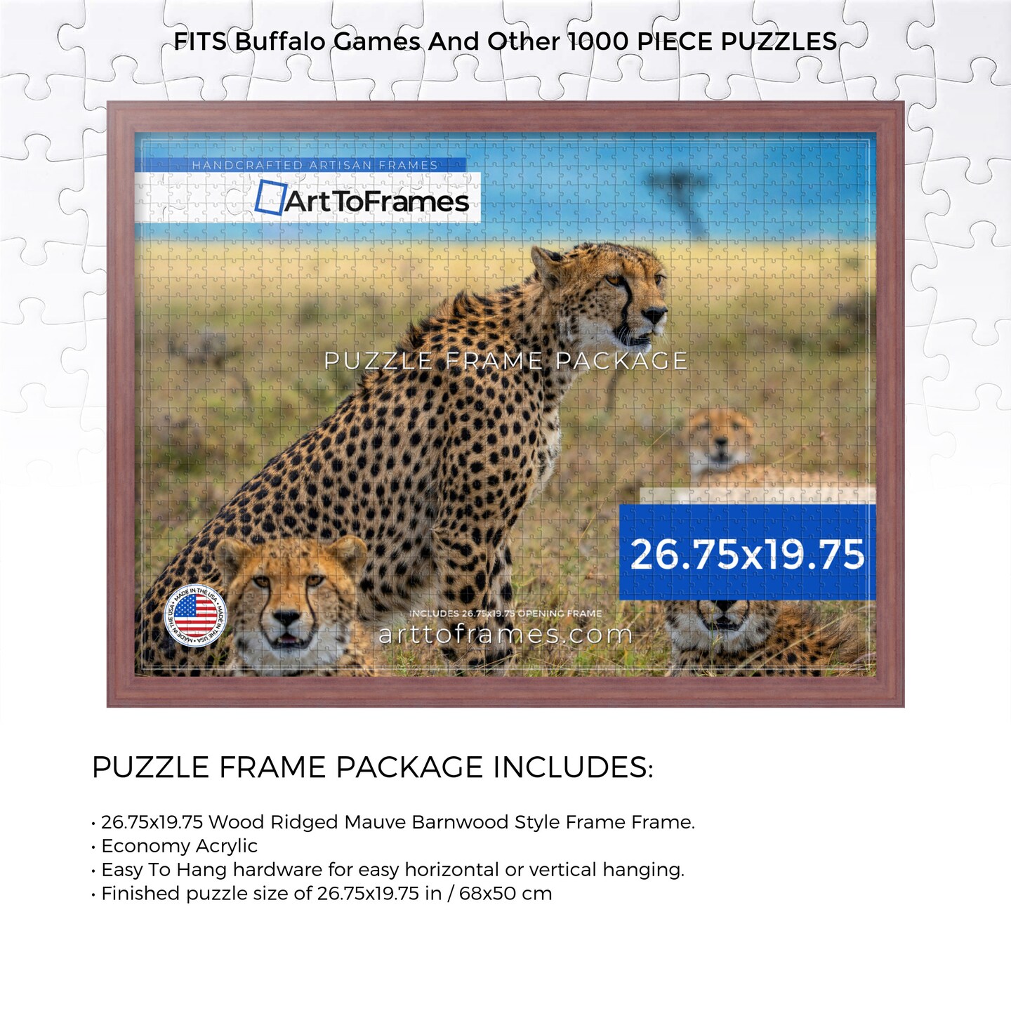 ArtToFrames 26.75x19.75 INCH / 68x50 CM Puzzle Frame for 1000 piece Puzzles.This 1.50 Inch Custom MDF Frame for Puzzles Comes with Economy Acrylic, Available in Multiple Colors