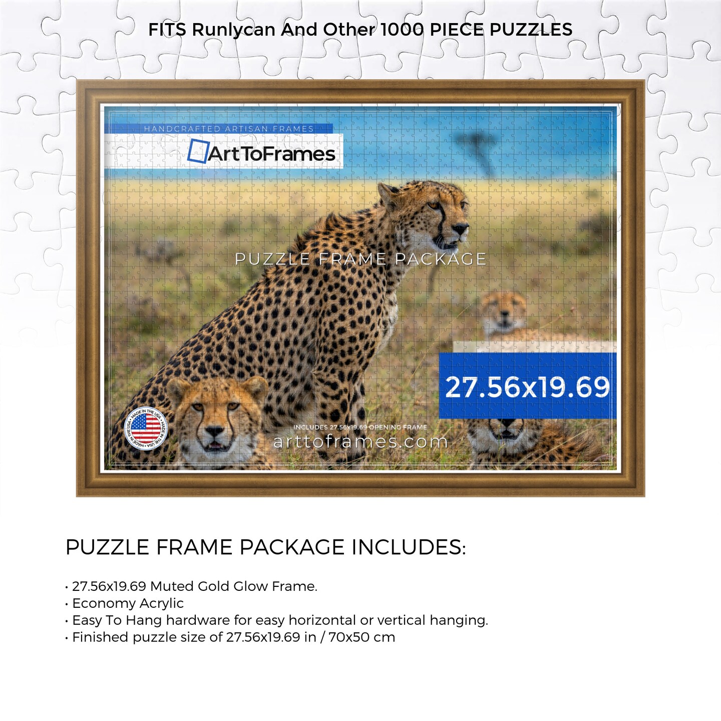 ArtToFrames 27.56x19.69 INCH / 70x50 CM Puzzle Frame for 1000 piece Puzzles.This 1.25 Inch Custom MDF Frame for Puzzles Comes with Economy Acrylic, Available in Multiple Colors