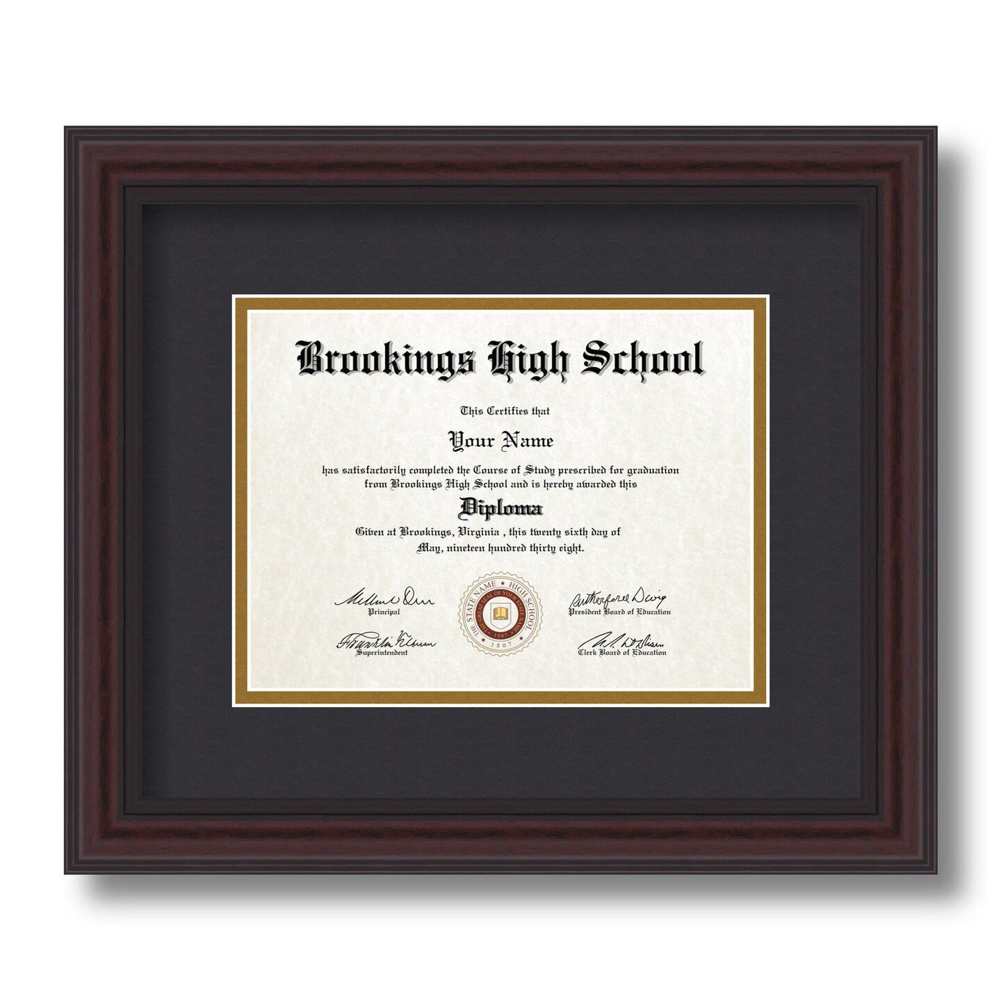ArtToFrames 6x8 inch Diploma Frame - Framed with Black and Gold Mats, Comes with Regular Glass and Sawtooth Hanger for Wall Hanging (D-6x8)