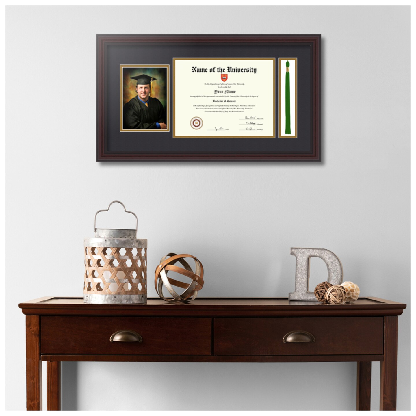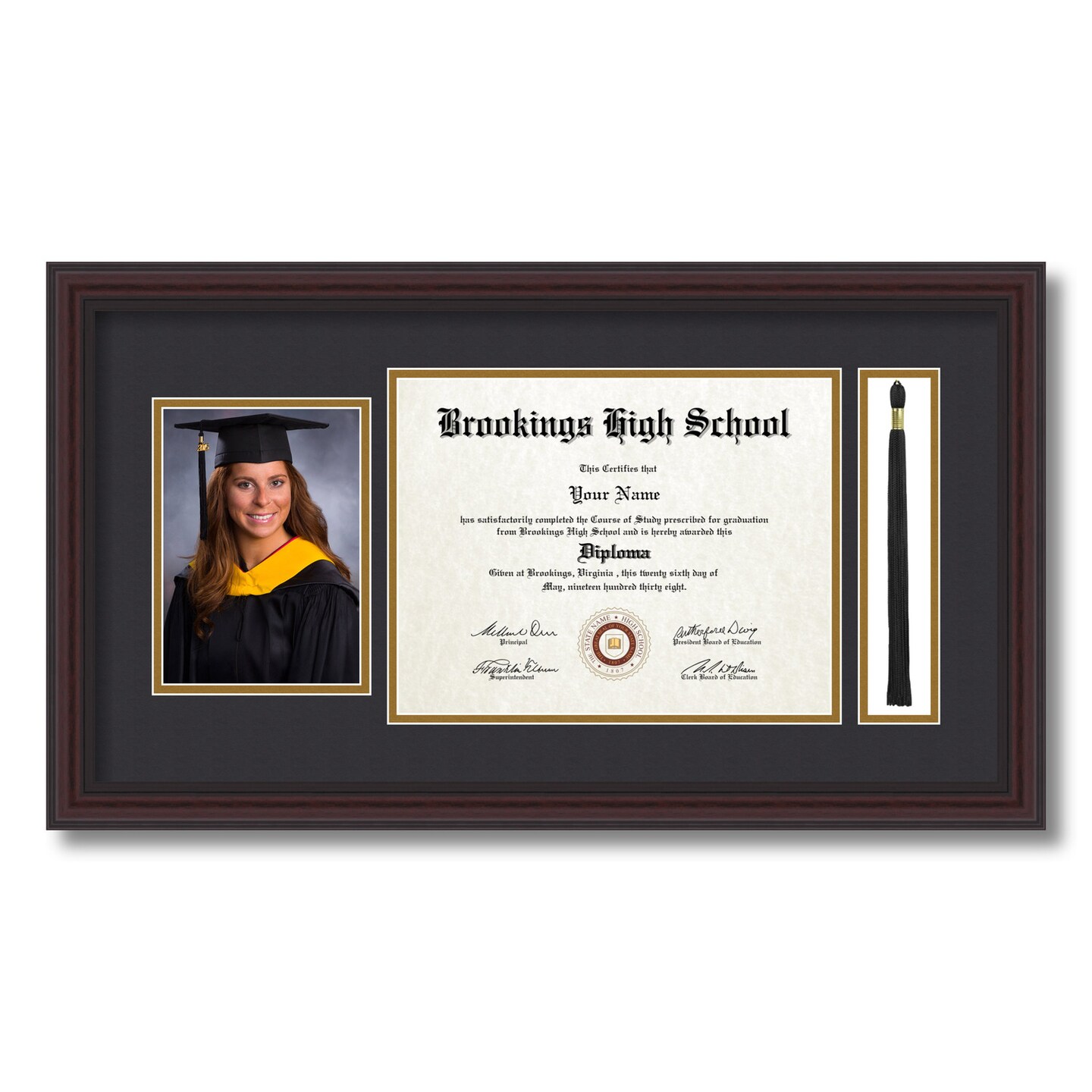 ArtToFrames 8.5x11 inch Diploma Frame with 5x7 Inch Image Opening and Tassel Opening - Framed with Black and Gold Mats, Comes with Regular Acrylic and Sawtooth Hanger for Wall Hanging (DIT-8.5x11)