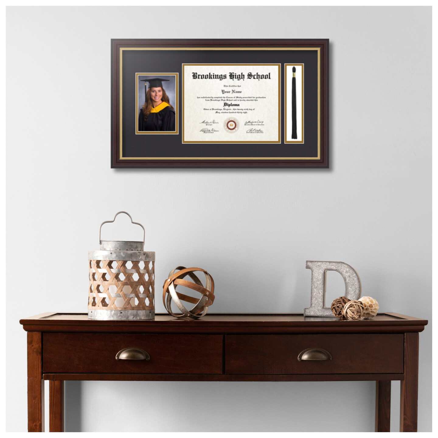 ArtToFrames 8x10 inch Diploma Frame with 4x6 Inch Image Opening and Tassel Opening - Framed with Black and Gold Mats, Comes with Regular Acrylic and Sawtooth Hanger for Wall Hanging (DIT-8x10)