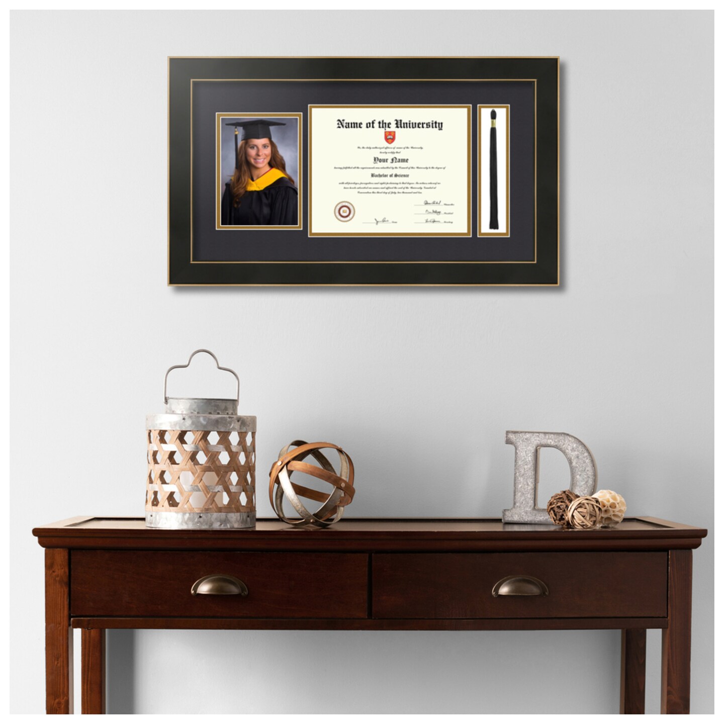 ArtToFrames 8x10 inch Diploma Frame with 5x7 Inch Image Opening and Tassel Opening - Framed with Black and Gold Mats, Comes with Regular Acrylic and Sawtooth Hanger for Wall Hanging (DIT-8x10)