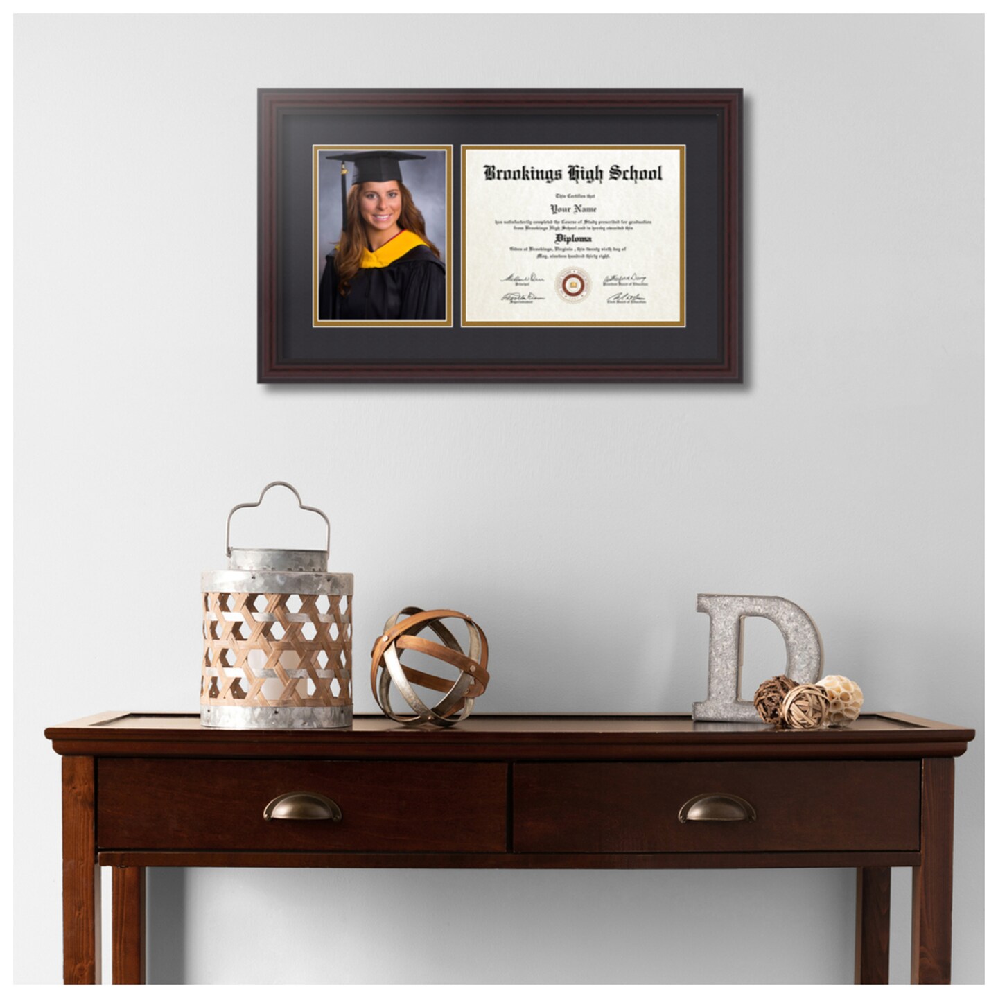 ArtToFrames 8x10 inch Diploma Frame with 6" x 8" Inch Image Opening - Framed with Black and Gold Mats, Comes with Regular Acrylic and Sawtooth Hanger for Wall Hanging (DT-8x10)