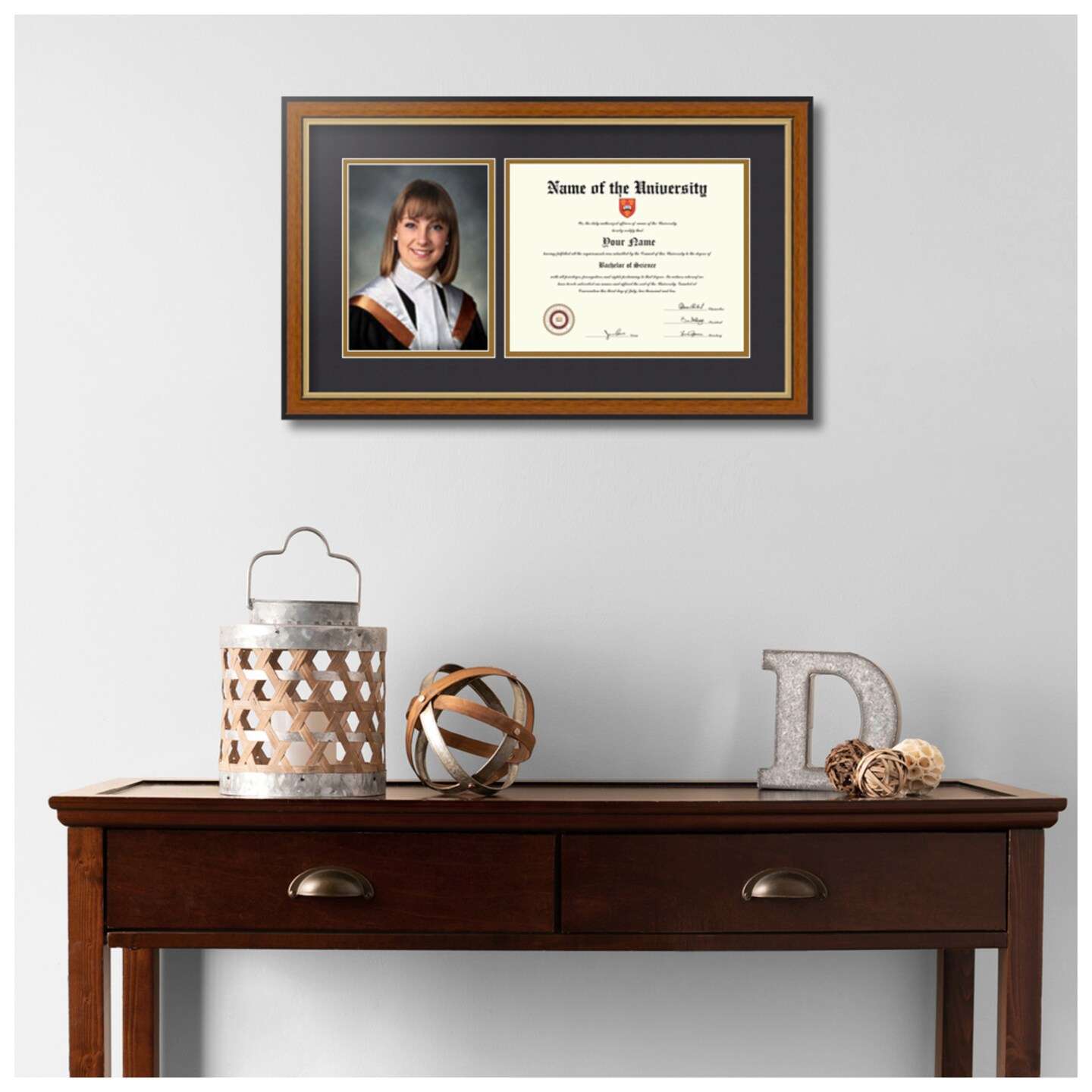 ArtToFrames 8x10 inch Diploma Frame with 6" x 8" Inch Image Opening - Framed with Black and Gold Mats, Comes with Regular Acrylic and Sawtooth Hanger for Wall Hanging (DT-8x10)