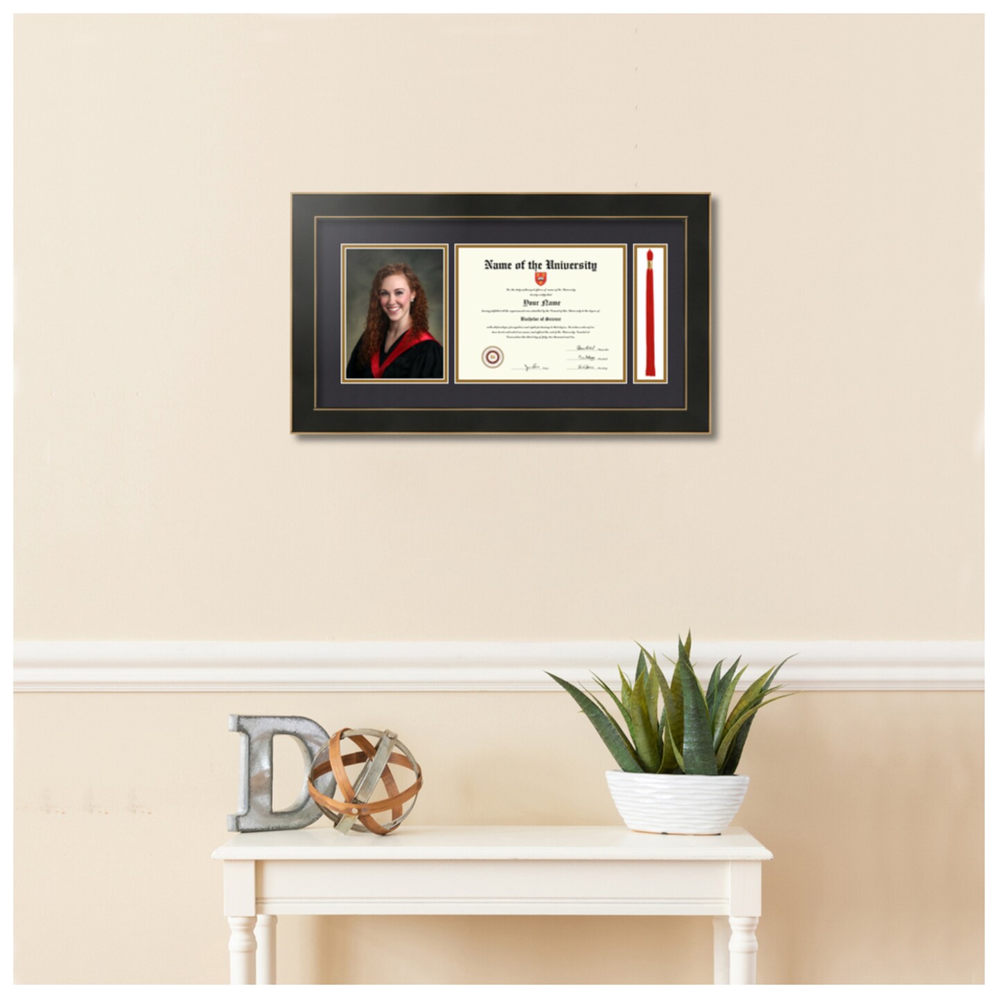 ArtToFrames 8x10 inch Diploma Frame with 6x8 Inch Image Opening and Tassel Opening - Framed with Black and Gold Mats, Comes with Regular Acrylic and Sawtooth Hanger for Wall Hanging (DIT-8x10)