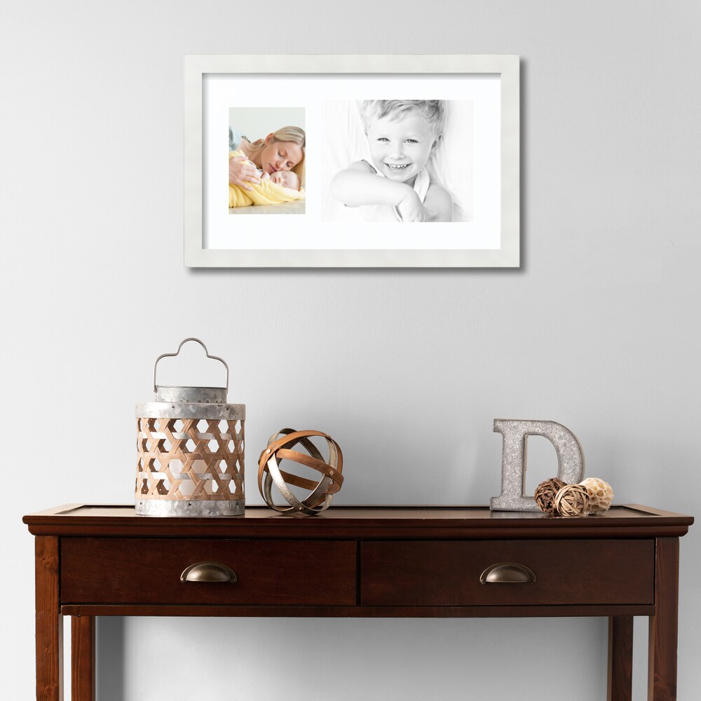 ArtToFrames Collage Photo Picture Frame with 1 - 5x7, 8x10 inch Openings, Framed in White with Over 62 Mat Color Options and Regular Glass (CSM-3966-166)