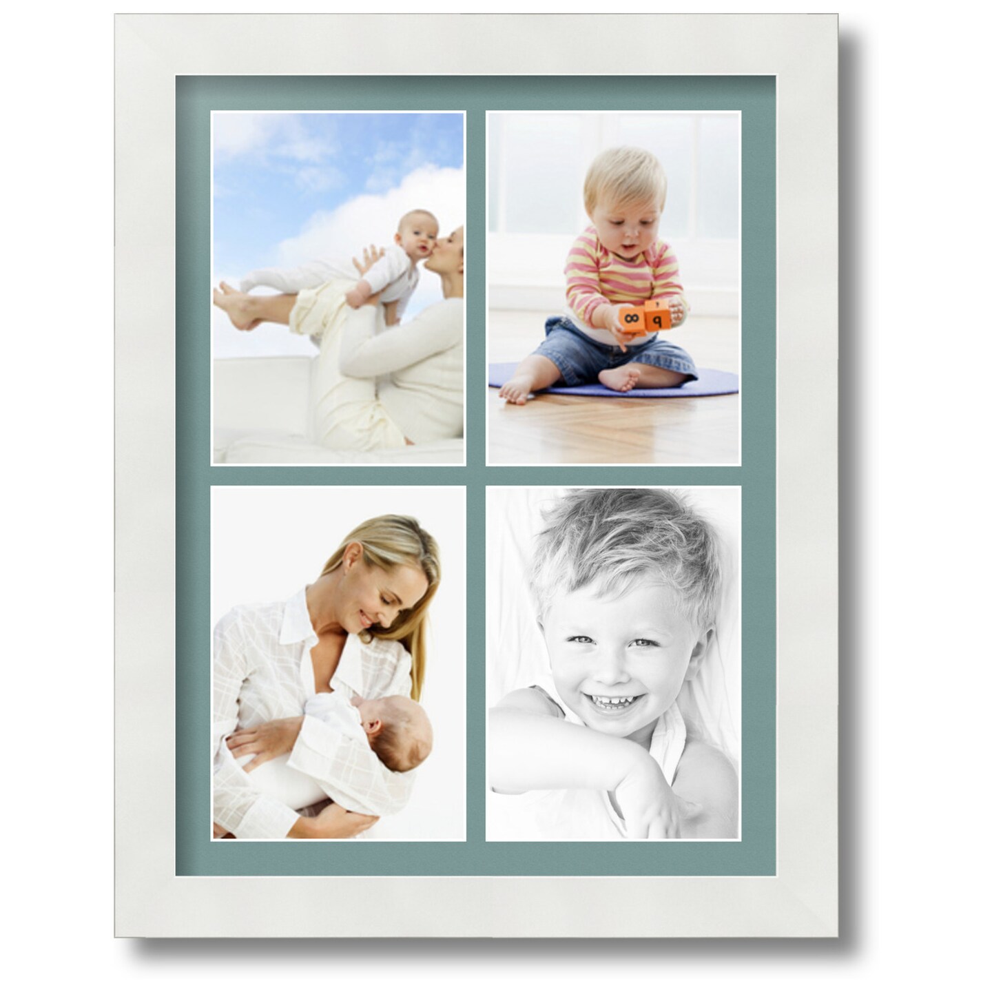 ArtToFrames Collage Photo Picture Frame with 4 - 5x7 inch Openings, Framed in White with Over 62 Mat Color Options and Regular Glass (CSM-3966-2153)