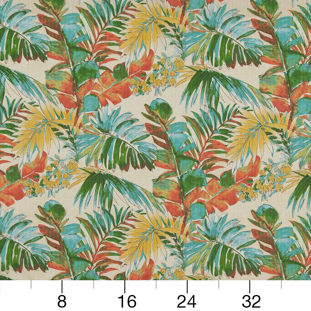 Aruba - Aqua & Teal,Red & Burgundy Leaves,Tropical & Botanical Upholstery Fabric 54 Inches"