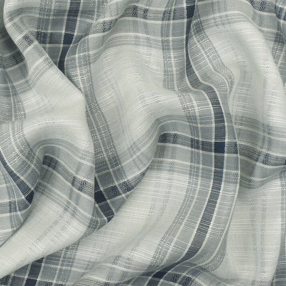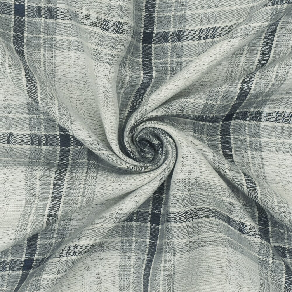 Ash Blue-Multi Plaid Cotton Dobby Woven Fabric By the Yard