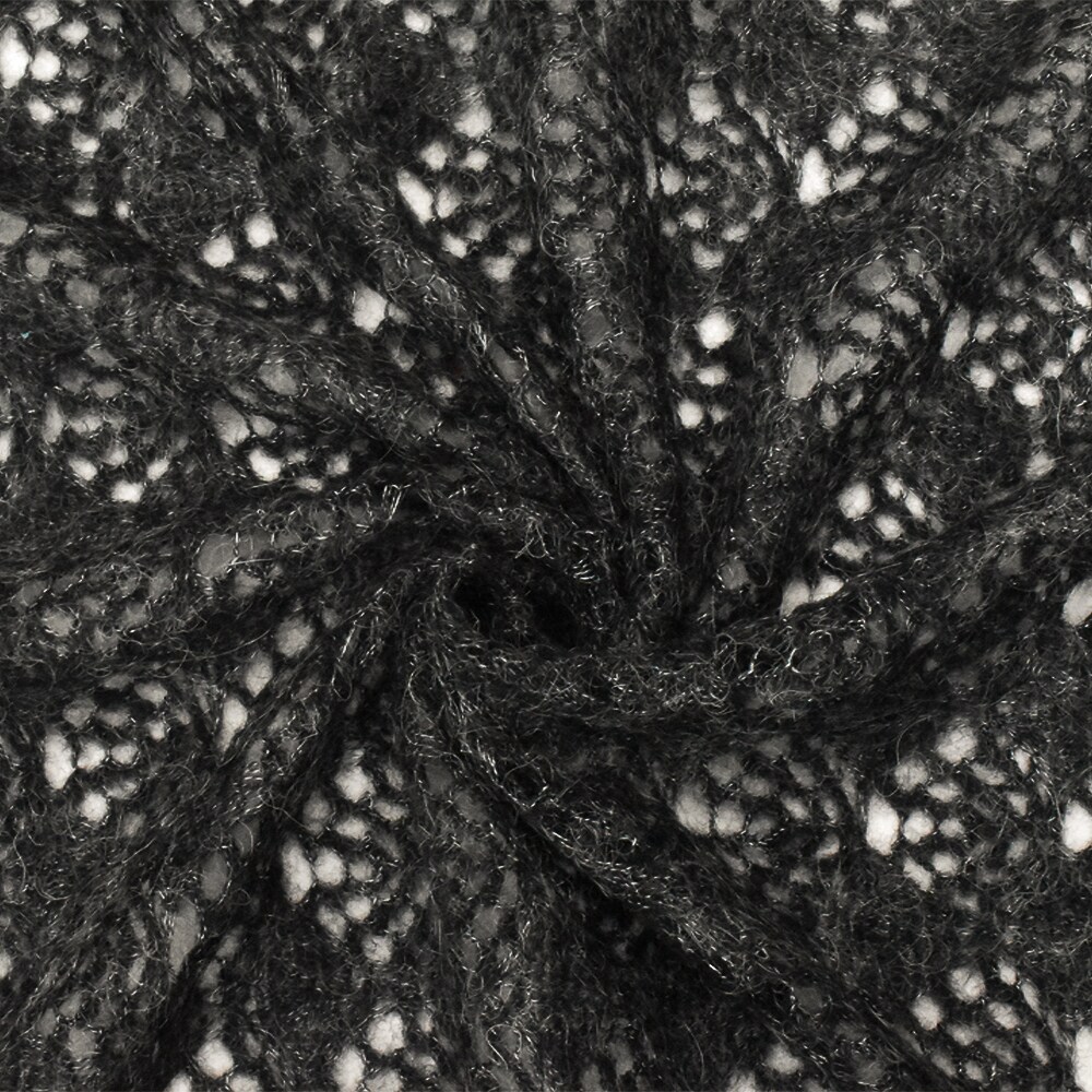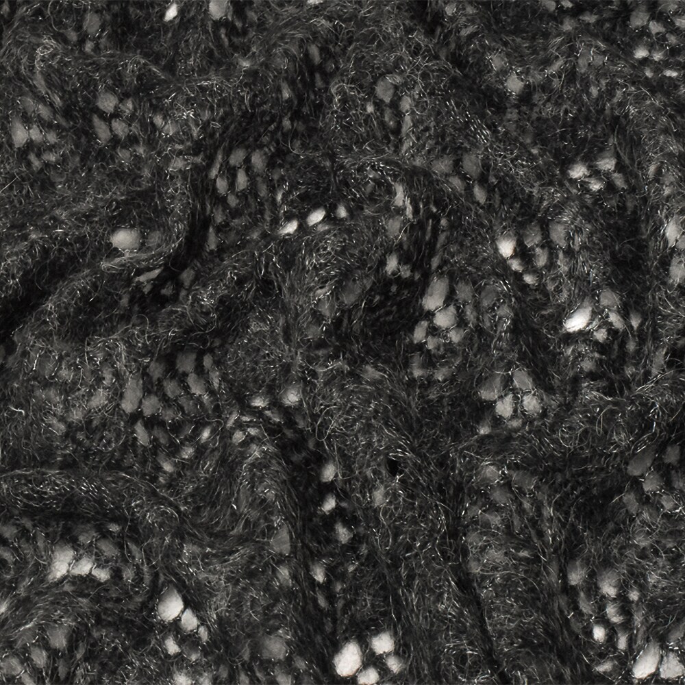 Ash Gray-Black Texture Polyester Wool Raschel Crochet Knit Fabric By the Yard