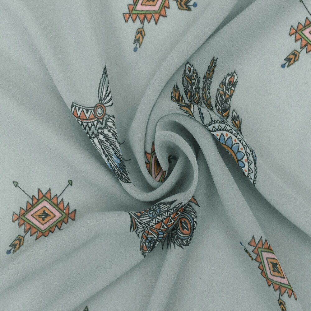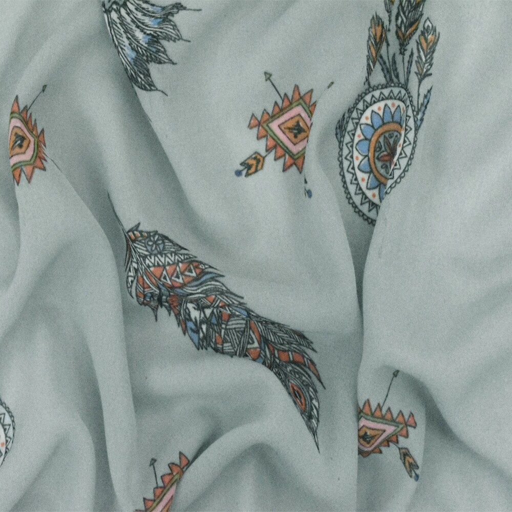 Ash Mist Blue-Multi Famous Designer Dream Catcher Printed Chiffon Fabric By the Yard